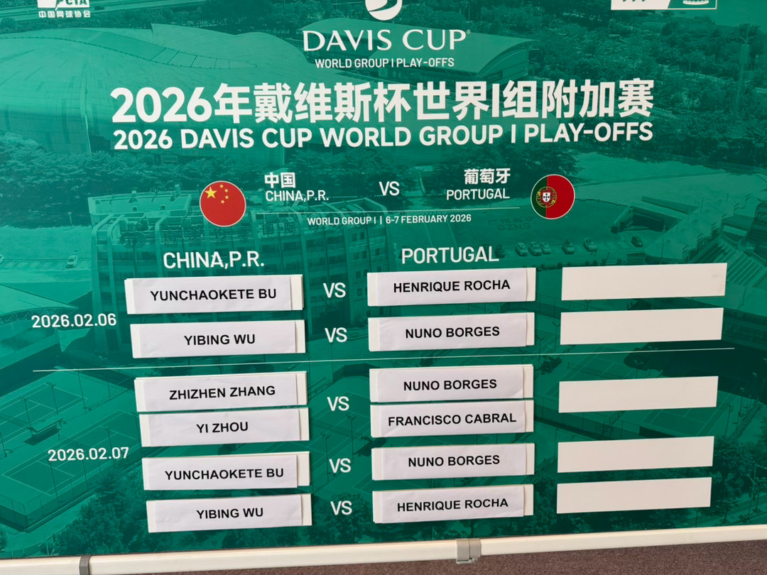 中国vs葡萄牙的戴维斯杯的初始对阵。