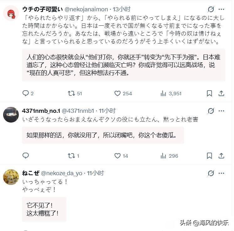 日本选举倒计时:麻生太郎叫嚣“反击中国”,遭网民痛斥 据外媒报道距离日本众议院选举仅剩数日,自民党为拉选票,行为愈发出格。 近日,自民党副总裁麻生太郎在街头演讲中声称,高市内阁支持率与口碑俱佳,对自民党是助力。他还表示,理解高市加强防卫能力的想法,称美国已无力继续“世界警察”角色,日本需自保,扩充军备是必然。 谈及朝鲜与台海局势,麻生竟大言不惭称,若形势危急,日本必须“予以反击”,此言与高市“台湾有事就是日本有事”如出一辙,实为给高市早苗站台,意指台海有异动,日方认为“有必要”就会干预,所谓反击,矛头直指中国。 本以为发表涉台强硬言论能助自民党拉票,却不料适得其反。 日本网民怒斥麻生,评论区满是“傻瓜”“白痴”等侮辱性词汇,纷纷要求其闭嘴。此前高市大放厥词,日本人尚不知中方反制威力,如今已见识到,自然不愿政客继续作死。且中日军事力量对比悬殊,日本若真敢与中国开战,后果不堪设想,除极端军国主义分子外,无人愿送死。