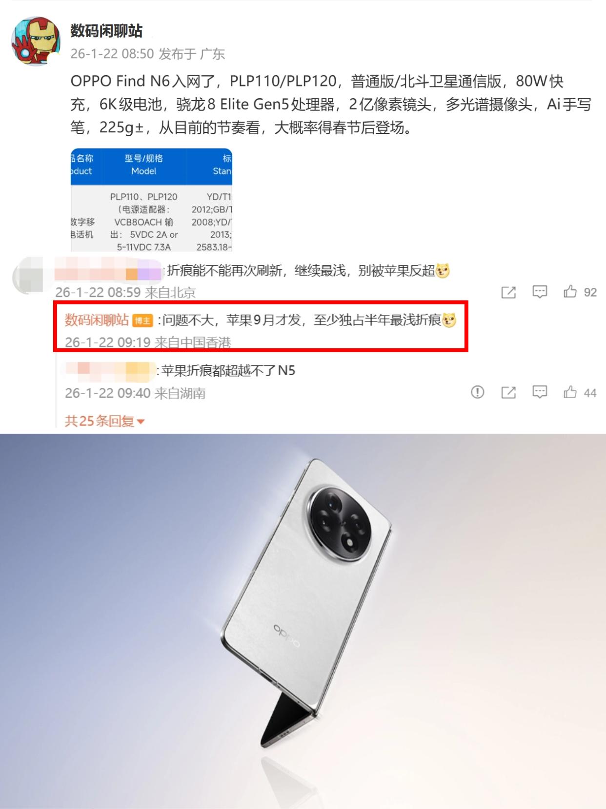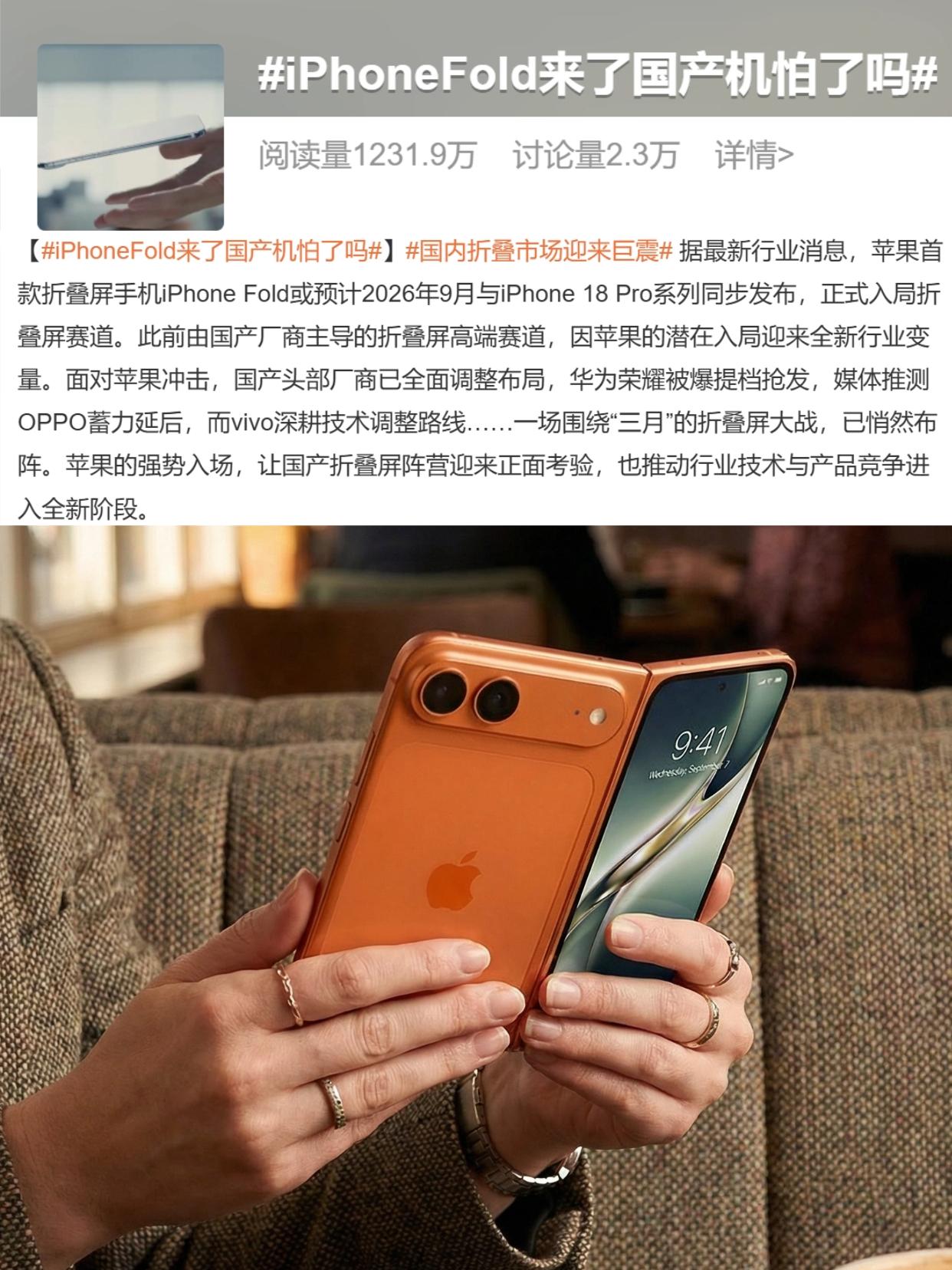 苹果出手国产品牌都怕了?网友:到底谁怕谁 最近iPhone Fold火得很啊,苹果首款折叠屏刚些爆料消息,各路讨论就没停过。什么苹果要整顿行业、冲击折叠屏市场、国产品牌要怕了等等,话题一个比一个夸张,最近还上热搜了!但说实话,国产折叠屏真不带怕的吧? - 不说别的,国内厂商卷折叠屏几年了,华为、OPPO等等各大主流品牌折叠屏产品多次迭代,核心技术、产品形态都很成熟了,先发优势摆在这,苹果想后发制人哪有这么简单,甚至还得反过来跟国产学习呢! - 之前不就有爆料传出,苹果为了控制折痕买了OPPO Find N5回去拆机研究,据说苹果用的屏幕、铰链等核心技术就是新款OPPO Find N6的。那苹果主打的无折痕,不还得被3月份发布的OPPO先独占个大半年的,再加上还有AI手写笔,感觉N6得起飞啊! - 所以说,不看品牌效应,单看产品的话国产折叠屏完全不虚苹果啊,大家觉得呢?