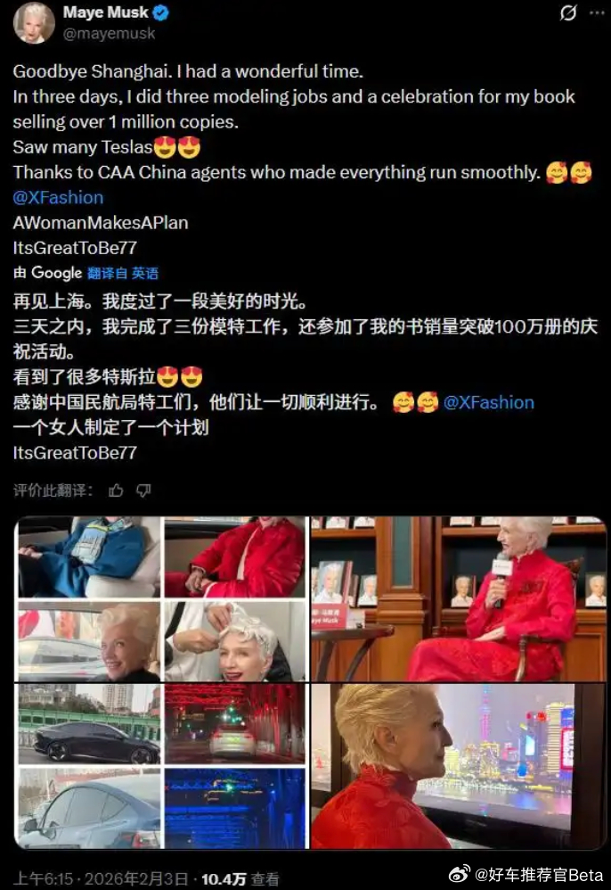 对于这一小插曲,深蓝CEO姜海荣也很大方地进行了回应,表示“这波美丽的误会,是中国新能源汽车带给世界的小惊喜,很开心让世界看到中国智造的身影!”马斯克妈妈把国产车认成特斯拉