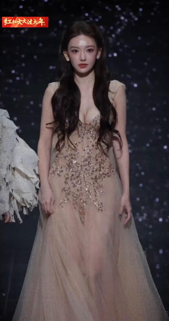 刘亦菲这造型也太美了!抹胸花边裙,花边在灯光下闪得我移不开眼,卷发温柔又带点小妩
