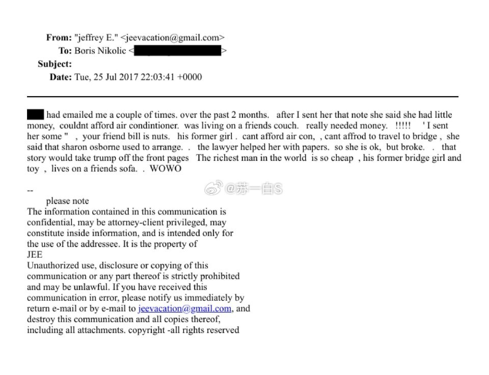 是爱泼斯坦2017年发的,收件人是曾担任盖茨科学和技术首席顾问的Boris Nikolic(图二)。