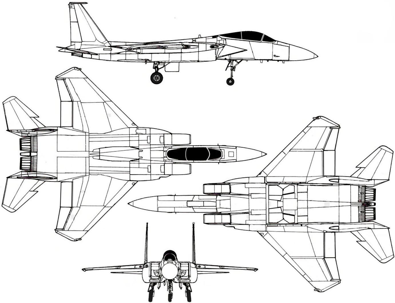 F-15战斗机气动布局出色,机翼负荷较低,并具备较高的推重比,武器和飞行控制系统采用了先进的自动化设计。该机使用的多功能脉冲多普勒雷达具备较好的下视搜索能力,利用多普勒效应可避免目标的信号被地面噪声所掩盖,能追踪树梢高度的小型高速目标。F-15战斗机装有1门20毫米M61A1机炮,另有11个武器挂架(机翼6个,机身5个),总外挂可达7300千克,可使用AIM-7“麻雀”、AIM-9“响尾蛇”和AIM-120“监狱”等空对空导弹,以及包括GBU-28重磅炸弹在内的多种对地武器。