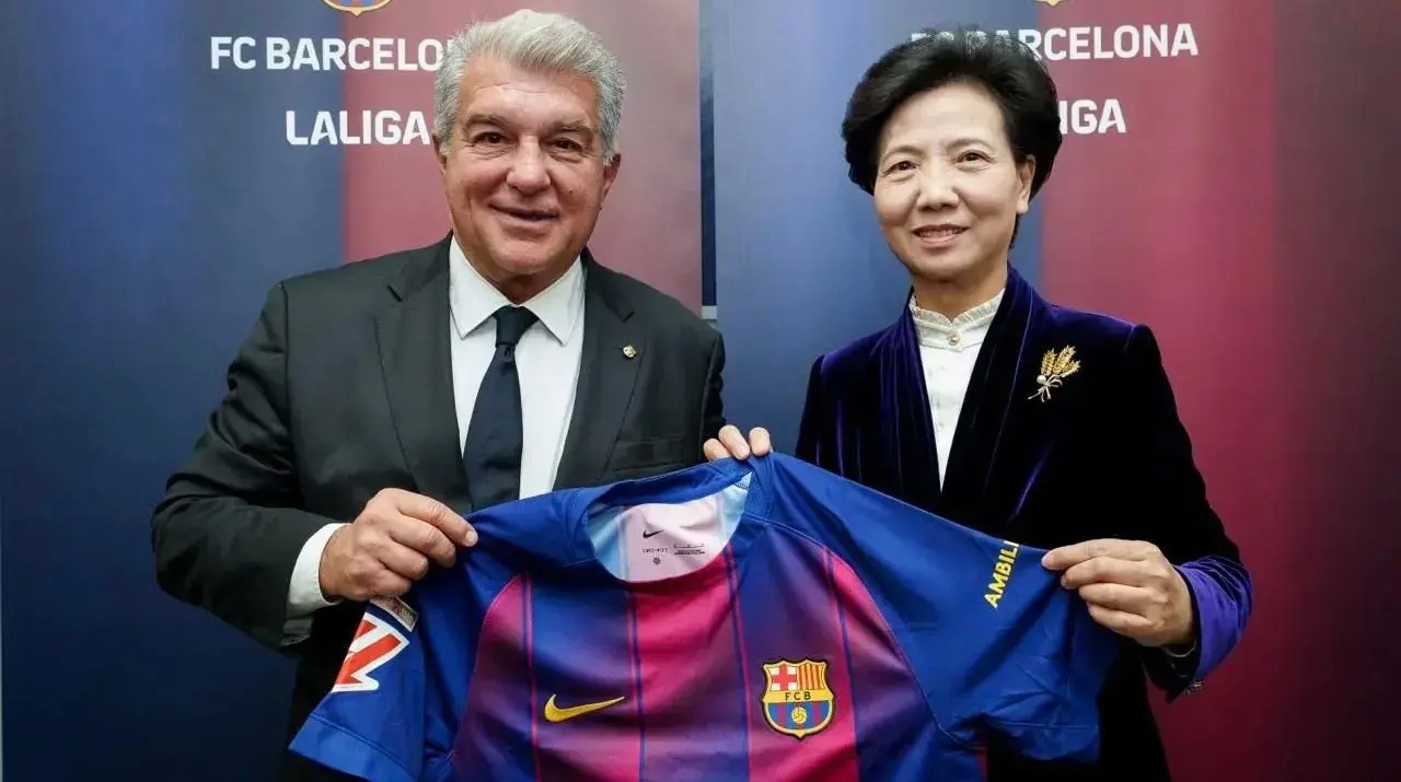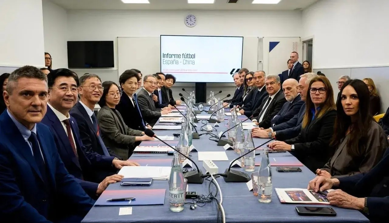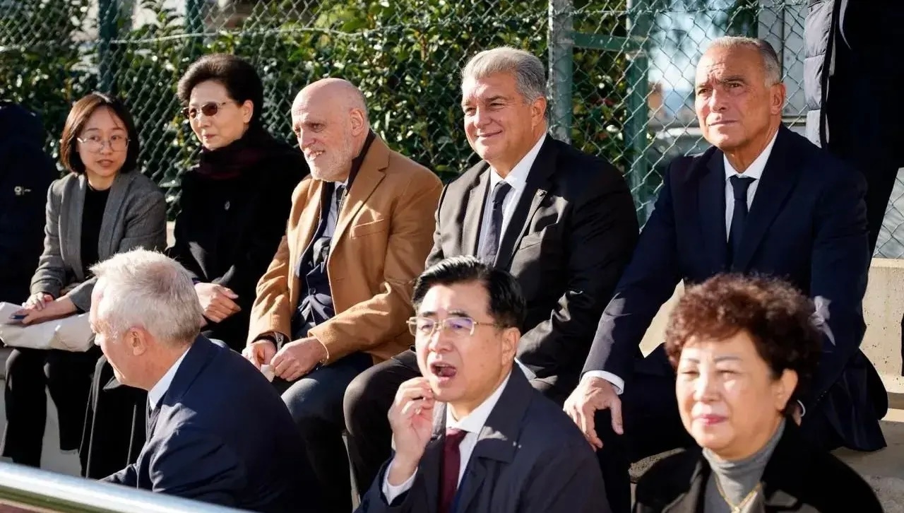 国务委员谌贻琴率领的中国代表团访问巴萨拉玛西亚青训营。西甲主席特瓦斯和巴萨主席拉波尔塔全程陪同,双方进行合作会谈。