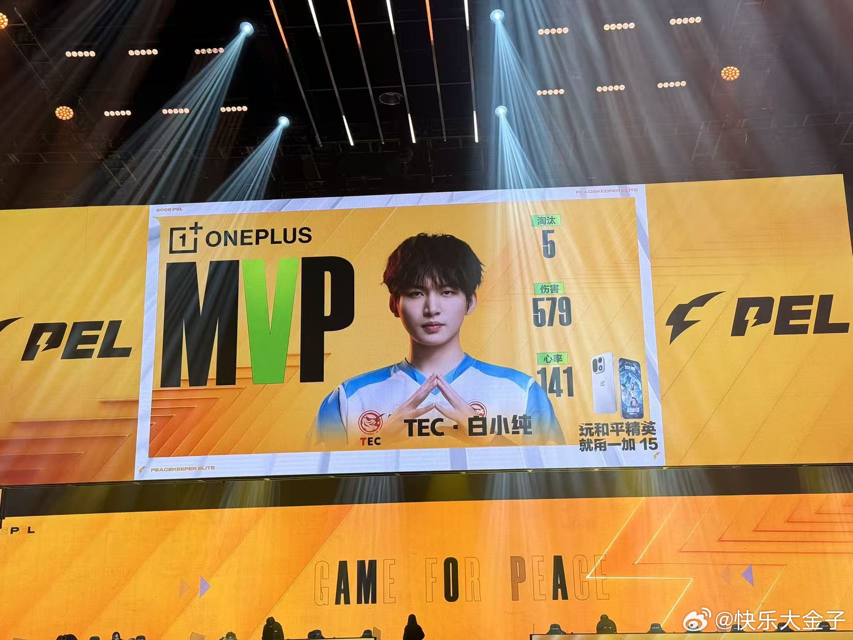 TEC春季赛首鸡白小纯春季赛单个MVP TEC首鸡,白小纯获得MVP,恭喜。和平精英职业联赛