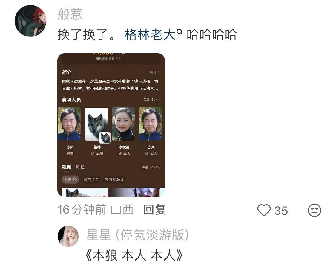 别再吵谁是C位了,内娱最狠的“一番”,直接给了头狼。 《重返狼群》这片子,最初宣传把小狼格林排在第三,观众瞬间炸了锅,直接喊话:“我们狼王,好歹是个二当家的! ” 片方没搞公关文,直接掀了桌子:格林,一番,饰演“本狼”;两位主演,退居二番三番,饰演“本人”。 这操作不是炫技,是戳破了一个真相:在绝对的真实面前,所有以人类为中心的规则,都脆得像一张纸。 撕掉番位的不是片方,是生命本身的分量。