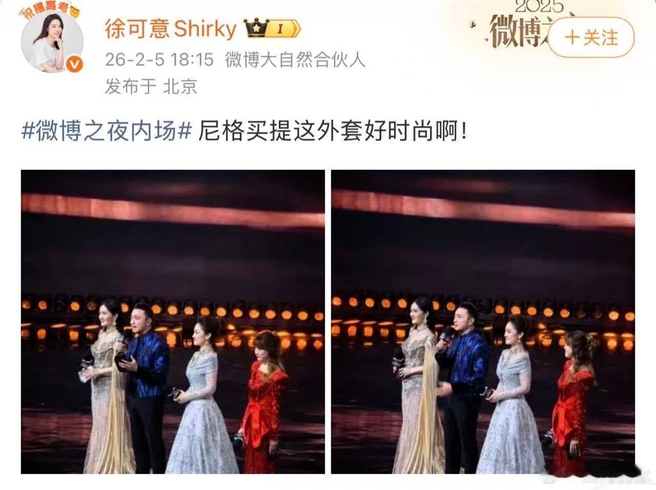 尼格买提衣品 微博之夜造型太惊艳!蓝色暗纹外套融新疆艾德莱斯元素,现代剪裁衬出端庄大气,丝路流光般的纹理藏满民族风情。从盛典到春晚,小尼的穿搭总能传递文化温度!