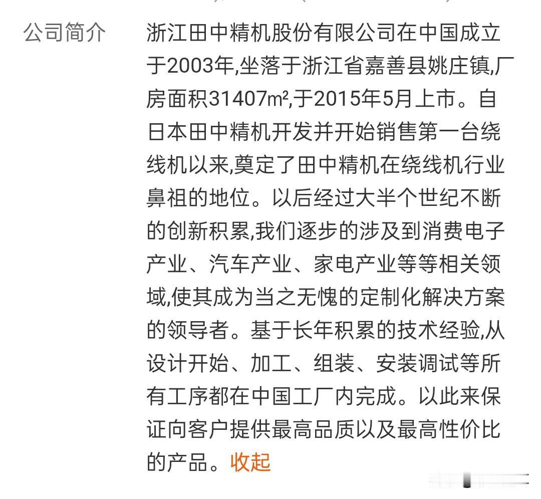 最近大妖的田中精机,到底是中国公司,还是日本企业 田中精机最近两天可谓风头正劲