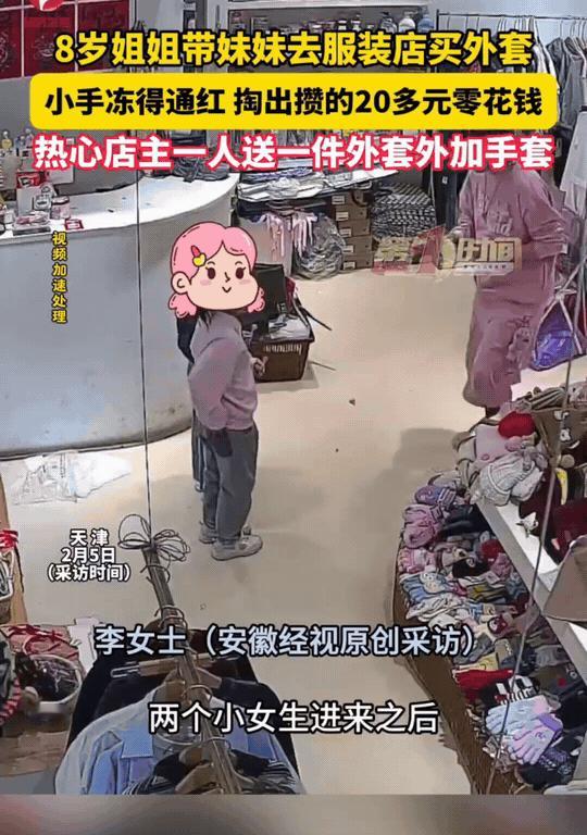 不发财都难!天津,8岁女孩拿着20元零花钱给妹妹买外套。店主李女士不仅没有收钱,