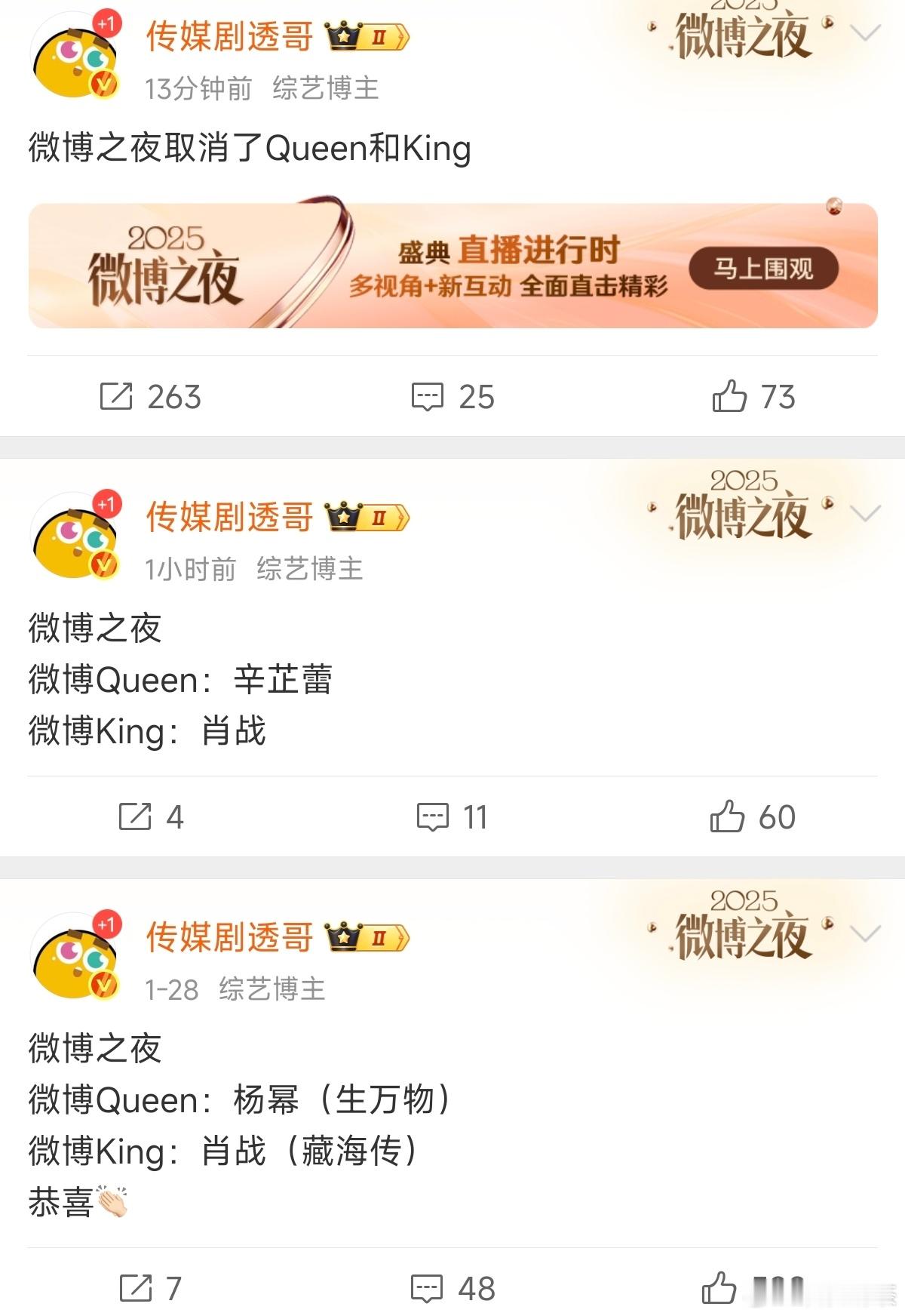 肖战三封微博KING杨幂三封微博QUEEN