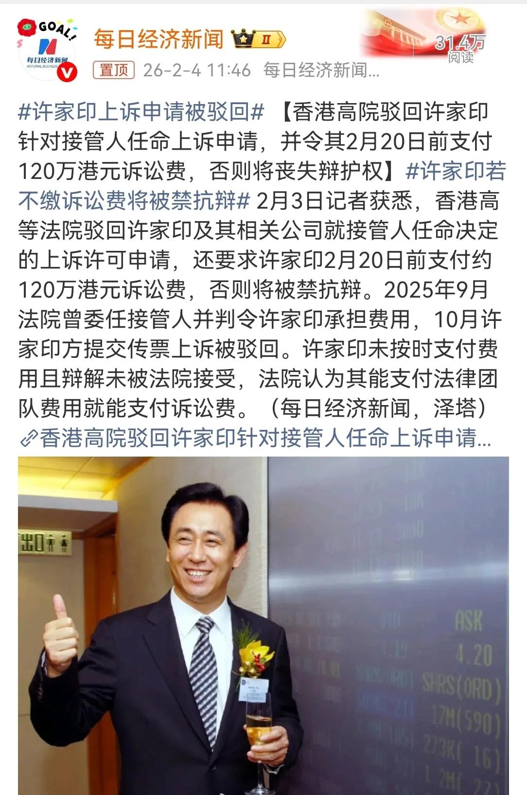 付不起120万诉讼费,许家印上诉被全部驳回。令人意外的不是许家印上诉,而是堂堂许