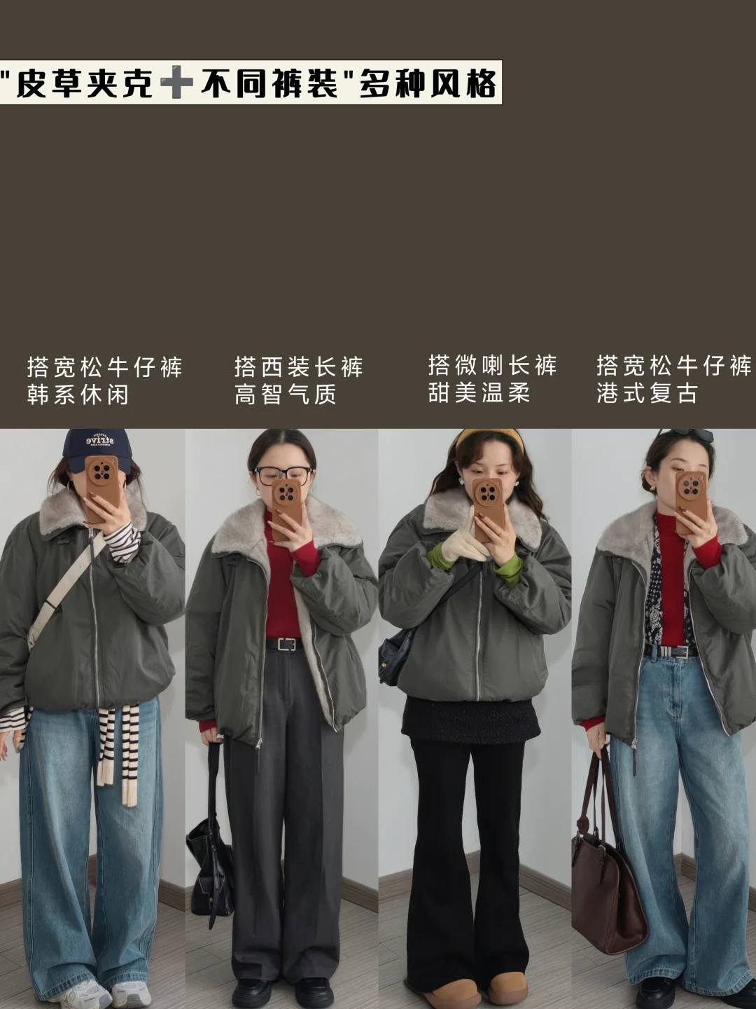 皮草夹克搭配裤装 思路分享来啦🥰 前几天分享它搭配各类裙装 因为图片太多了 一次性整理不出来 所以分开两篇发出 相对搭配裙装 其实搭配裤装要简单的多 今天把思路分享给大家 希望可以给到大家帮助呀~