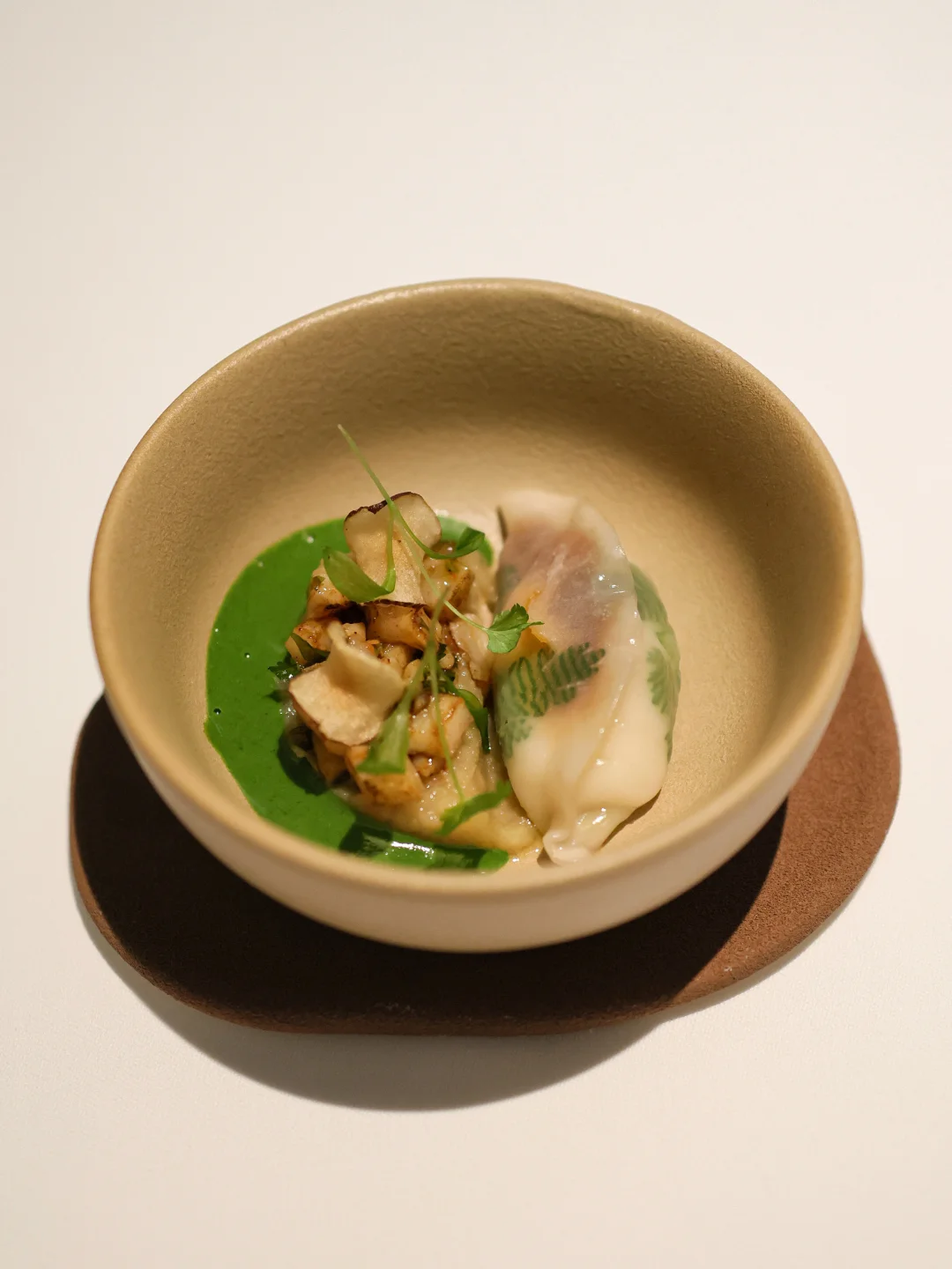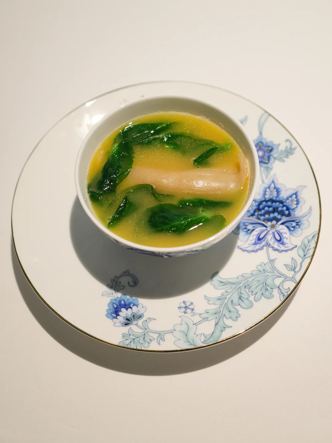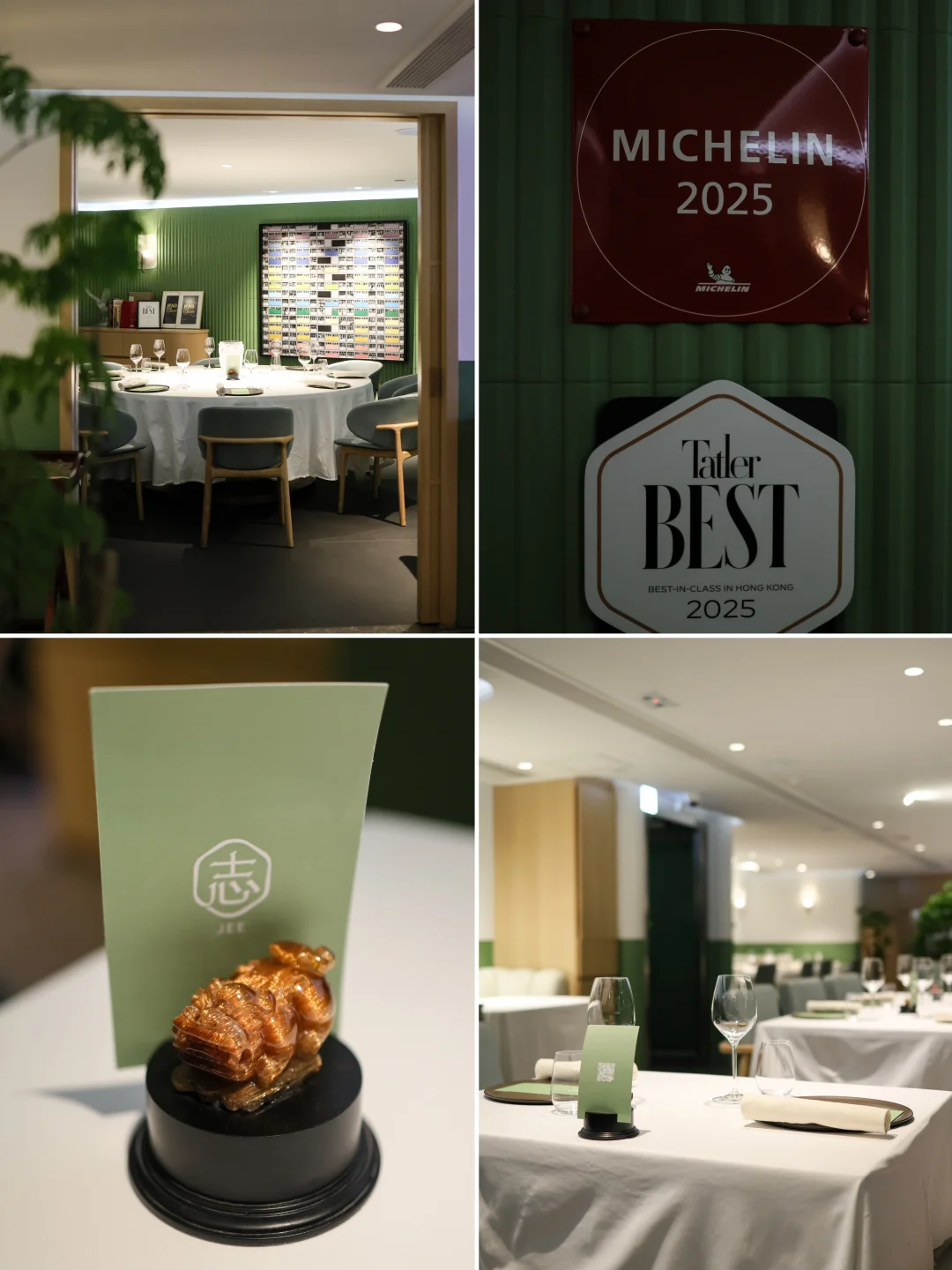 很早就刷到了这家店,听说是是用现代偏西餐的呈现来处理广东食材,对中国胃友好的同时,也会有相对更为精致的摆盘。 作为漂亮饭,🧾在中环很有性价比,午餐6道式388💰我这次吃的晚餐,10道式1088💰 三道前菜风味都在线,不过因为都是有点煎炸的处理,所以开胃差点意思,但是后面的甲鱼冻和鲜蟹肉多士扳回一局,尤其是鲜蟹肉多士搭配的避风塘脆片,风味层次很丰富,喜欢! 后面的菜除了一道咸鱼菜心苗个人表示一般之外,都是有板有眼的漂亮饭出品,主菜的梅菜龙虾汁水很多很下饭,还蛮喜欢的,有机会的话可以追加试试。