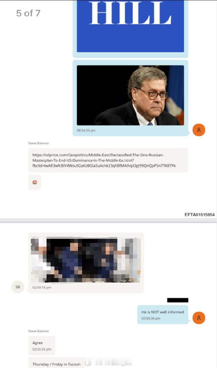 值得注意的是,爱泼斯坦在与班农的交谈时表露出了两人针对⏰的强烈敌意,尤其是对tg的强烈敌视,他们似乎看不起“泥腿子出身”。