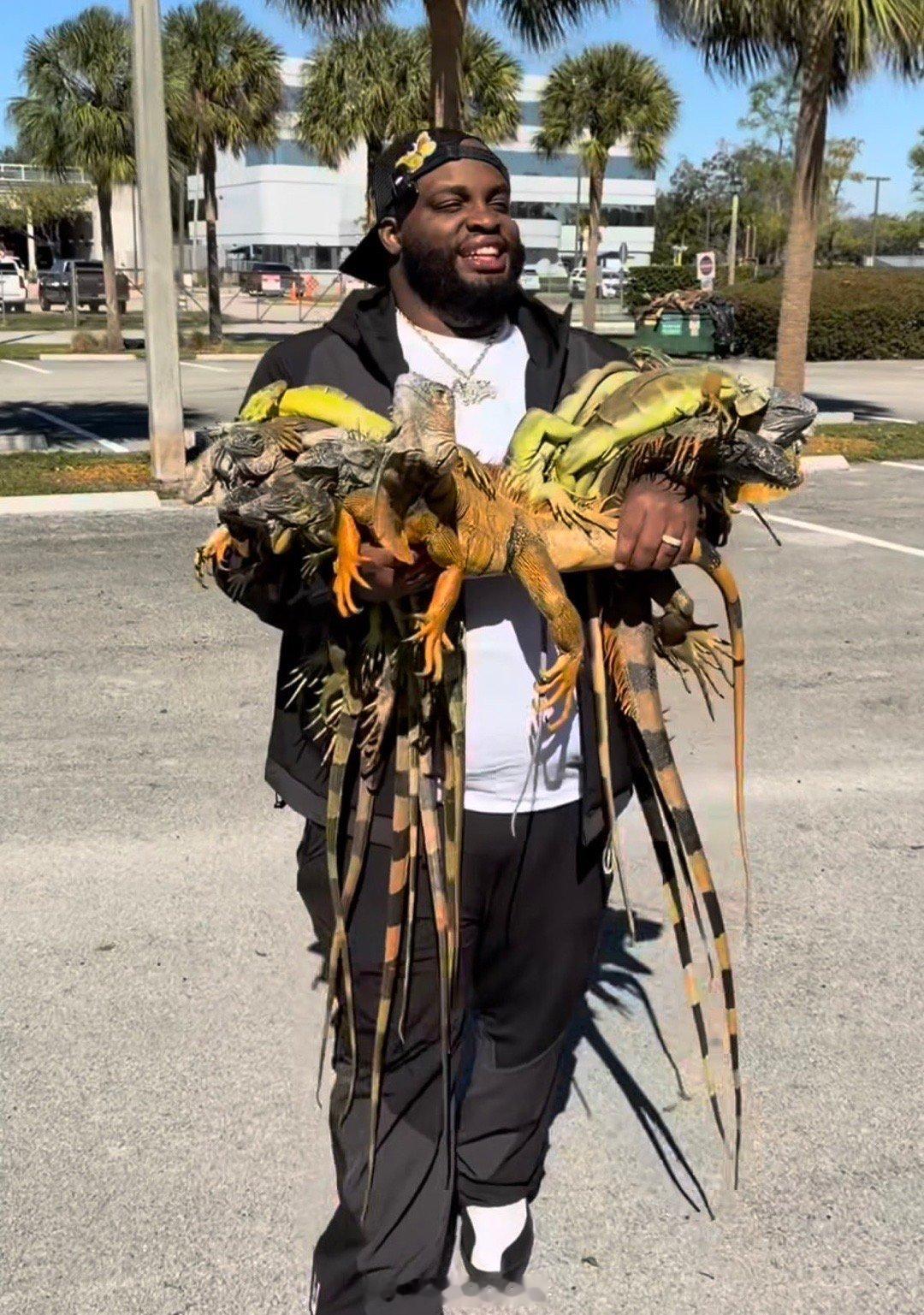 美国佛罗里达州出现了一次罕见的寒流,导致数千只鬣蜥冻僵,有些甚至从树上掉了下来。