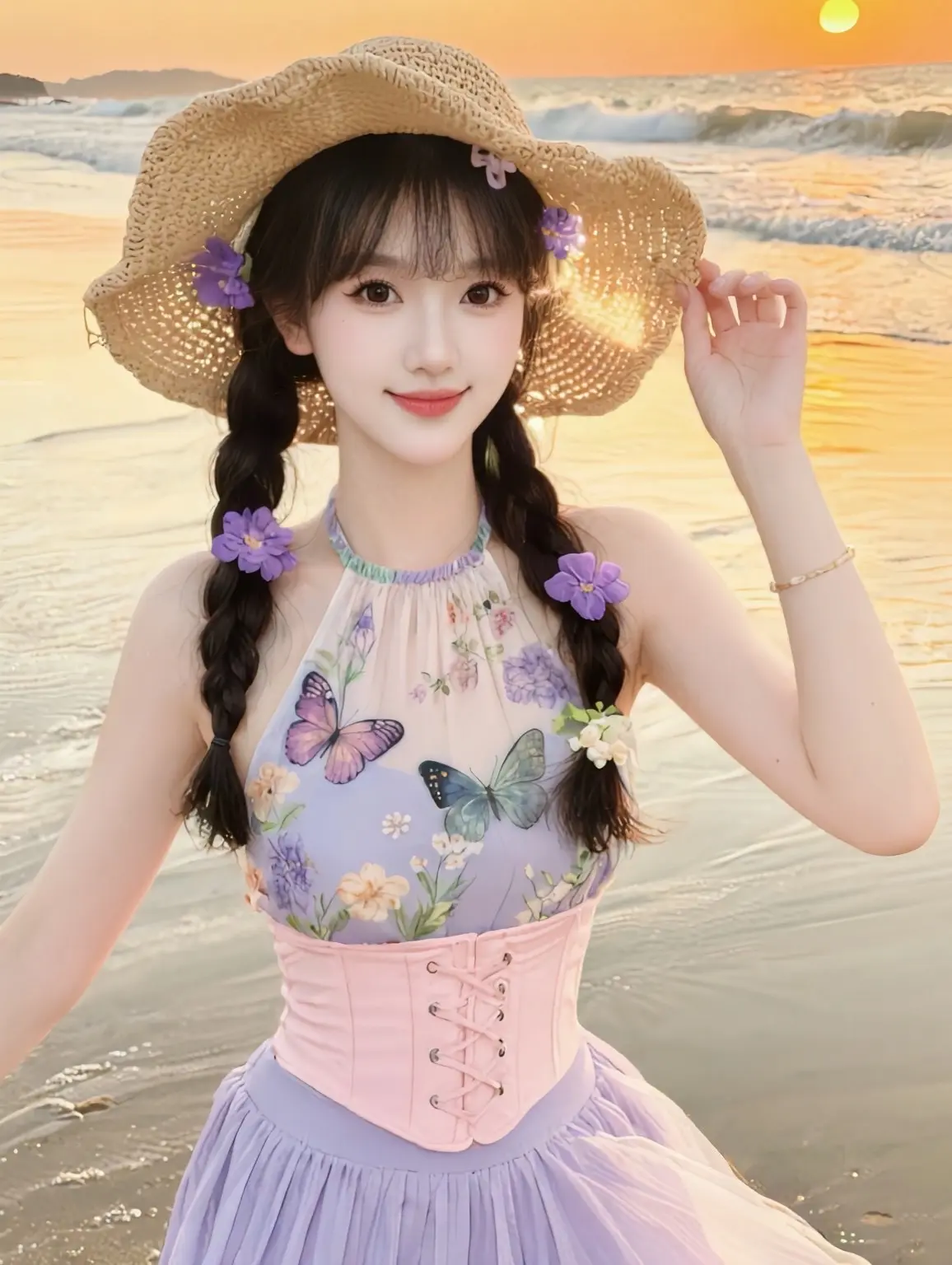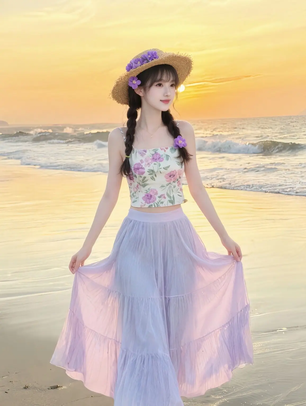 夏季连衣裙 海边拍照 女生拍照姿势 气质仙女裙穿搭