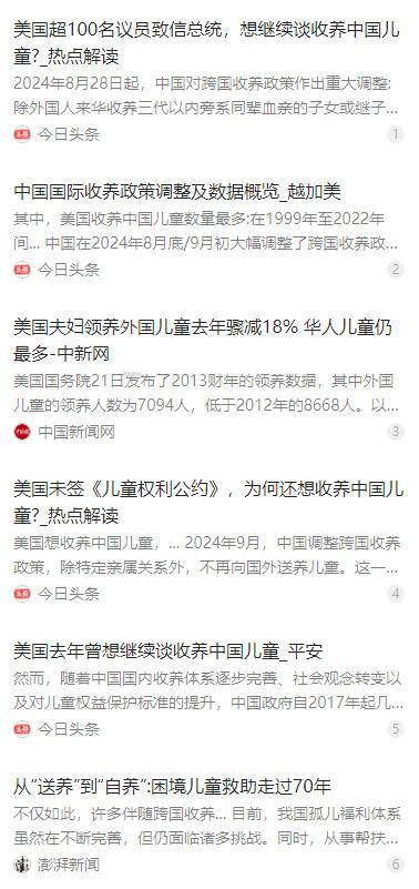 知道为什么中国禁止美国再收养中国孤儿了吧,美国人不养自己国家的流浪孩子,但万里迢迢的跑到中国的孤儿院来领养中国的孩子,太可怕了! 麻烦看官老爷们右上角点击一下“关注”,方便您进行讨论和分享,感谢您的支持! 2024 年 8 月 28 日,中国民政部正式调整跨国收养政策,9 月 5 日外交部发言人在记者会上明确对外说明,除三代以内旁系同辈血亲子女、继子女等特殊亲属情形外,不再向国外送养儿童。这一调整,对长期大量收养中国儿童的美国影响最为直接。 过去几十年,美国一直是收养中国儿童最多的国家。公开数据显示,1992 年以来,先后有超过 8.2 万名中国儿童被美国家庭收养,2005 年一度达到年度峰值,不少家庭不远万里来到中国办理收养手续。 但对比美国本土情况不难发现,美国国内长期存在大量孤儿、流浪儿童与困境儿童,未能得到充分安置与妥善领养。一边是本国孩子缺少关爱,一边是大量跨洋收养中国儿童,这种反差本身就值得警惕。 早年被美国家庭收养的中国儿童里,多数是身体残疾、患有疾病或有先天缺陷的孩子。这些孩子本就需要更细致的照料,可赴美之后,部分孩子没能得到安稳成长,反而遭遇虐待、忽视、剥削,甚至出现致死的极端悲剧,相关案例多次被媒体曝光。 更关键的是,美国至今没有批准联合国《儿童权利公约》,在儿童权益保护、跨国收养后续监管、虐童追责等方面缺乏完善的国际公约约束与国内刚性保障,儿童被收养后的安全与权益难以稳定兜底。 中国早年之所以开放跨国收养,有特定的历史背景。过去国内经济条件、儿童福利保障体系不够完善,孤儿数量较多,2013 年全国孤儿数量达到 54.9 万人,当时借助跨国收养,能为部分孩子提供家庭环境。 随着国家发展、民生保障不断完善,国内收养体系、福利机构服务、医疗康复支持全面提升,愿意且有能力收养孤儿的中国家庭越来越多。截至 2024 年底,全国孤儿数量已降至 13.1 万人,国内完全有能力妥善安置每一位困境儿童。 这次政策调整不是一刀切禁止,而是保留了亲属收养的合法通道,兼顾亲情与实际需求。政策核心始终是儿童利益最大化,优先让中国孩子在熟悉的本土文化、语言环境中成长,减少身份认同困扰,获得更稳定、更安全的成长保障。 跨国收养的初衷是为孩子寻找更好的归宿,但当本国保障能力足够、海外收养存在明显风险与漏洞时,及时收紧政策、守住儿童安全底线,是对每一个孩子负责,也是国家儿童福利体系成熟的必然选择。 不再向普通外国家庭送养儿童,不是排斥善意,而是把中国孩子的成长安全、文化归属与长远权益放在首位,用更稳妥、更负责的方式守护困境儿童的未来。