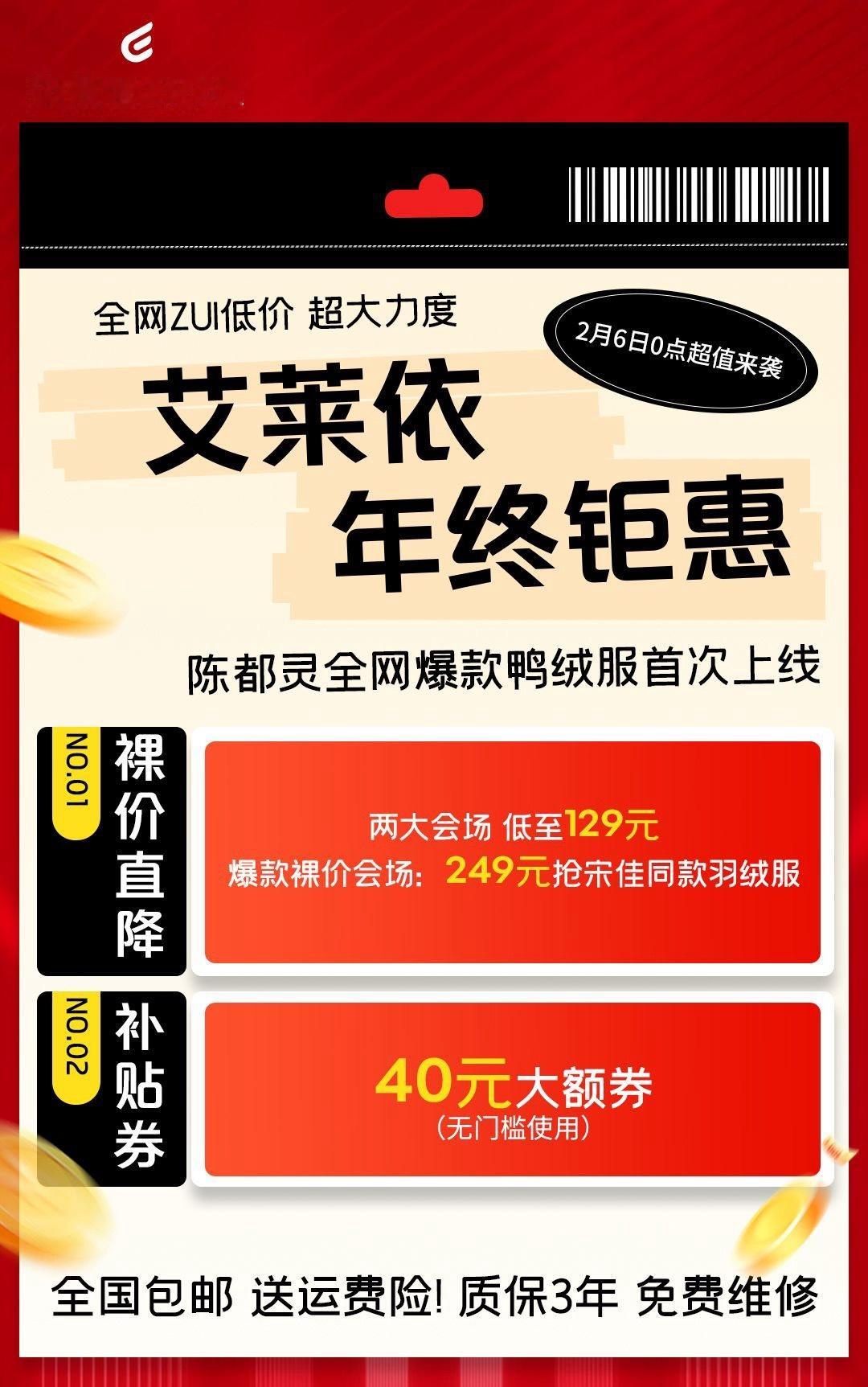 ⏰2月6日艾莱依返场126款爆品无门槛减40元‼️年终狂欢🤩直降到底❗