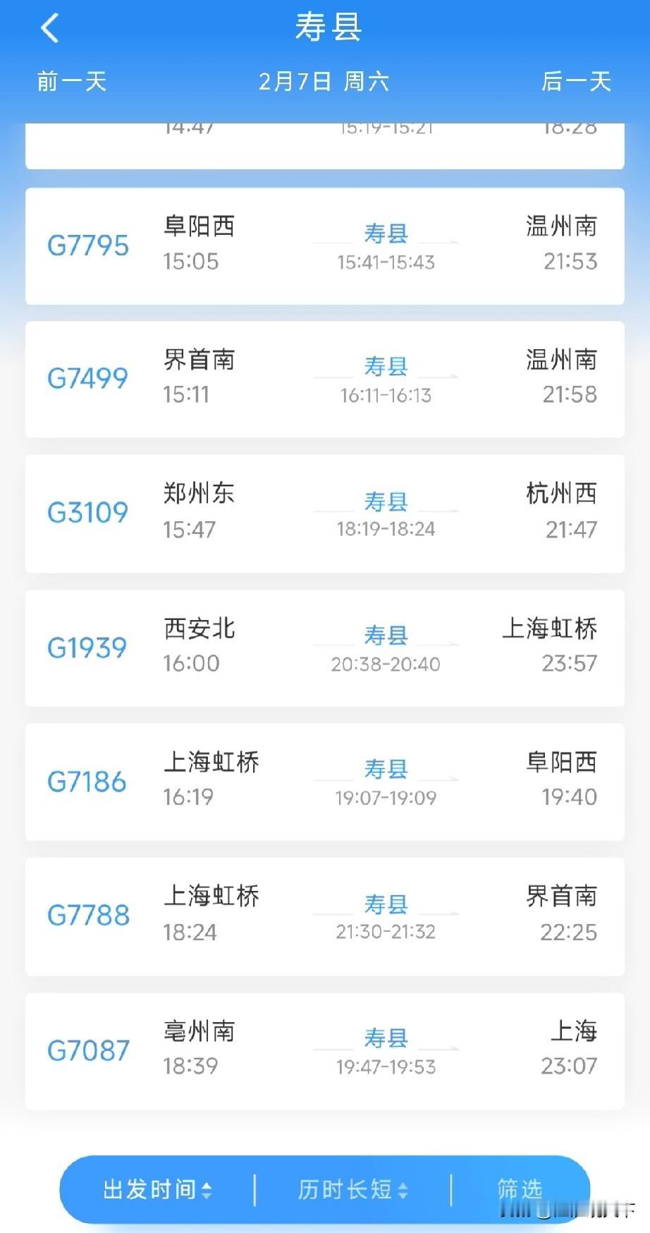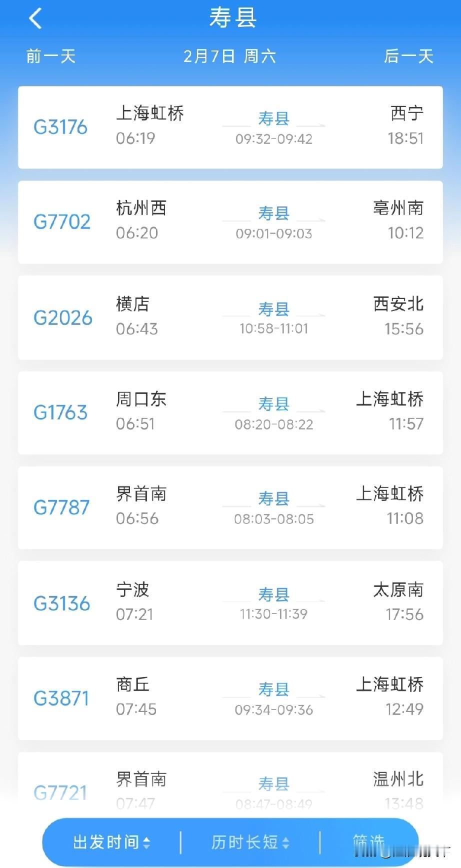淮南寿县高铁站开通快7年了,每天33个车次,大城市都能到,够用了 2019年12月1号商合杭高铁开通运营,寿县高铁站随即开通,时间在流逝,到了2026年,寿县高铁站已经开通近7年时间了。 寿县高铁站每天停发车次有33个,可以通达上海,杭州,宁波,温州,西安等省外大城市,还能到达合肥,阜阳,亳州等省内城市。 寿县从一寸钢轨都没有的铁路盲区,直接进入高铁时代,寿县人的交通出行有了翻天覆地的变化。 寿县高铁站只有2台4线,不算大站,但是够用了,寿县地形南北狭长,寿县高铁站主要服务中北部地区老乡,南部老乡还是依靠合肥市区的高铁站出行。 外地人来寿县旅游,寿县人从外地回家都越来越方便,越来越舒适,高铁的便利性功不可没。文旅寿县 寿县经济排名 寿县古城博物馆 寿县专线 寿县三千年 寿县火车站