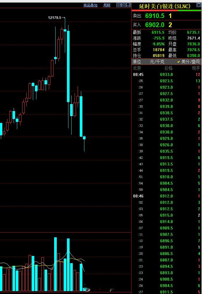 上周四(1月29日)最高价121.8美元/盎司,今天最低价63.9美元/盎司沪银期货