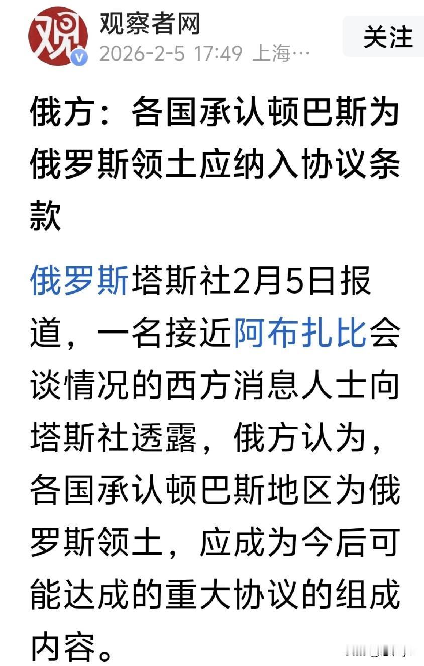 俄罗斯最新要求:各国承认顿巴斯为俄罗斯领土。俄美乌第二轮会谈2月4日至5日在阿联酋首都阿布扎比举行。俄方强调:各国承认顿巴斯地区为俄罗斯领土,应写入今后可能达成的协议,这一点承认至关重要。 俄罗斯不仅要得到顿巴斯地区,还要各国承认。这各国是指美国?乌克兰?还是北约、欧洲?或是世界各国?俄罗斯的底气真足!这不仅针对乌克兰,是否也针对联合国秘书长的发言呢!俄罗斯的目的能达到吗? 1月29日,联合国秘书长古特雷斯在纽约给克里米亚和顿巴斯问题下了“结论”:民族自决原则,在这里不适用。否定了“靠公投改国界”的合法性叙事。在联合国的法律判断中,领土完整优先于公投、自决和所谓的‘民意选择’。 顿巴斯战局 顿巴斯战局分析 顿巴斯战线 顿巴斯俄乌冲突 乌顿涅斯克州 顿涅茨克争夺战 顿涅茨克局势