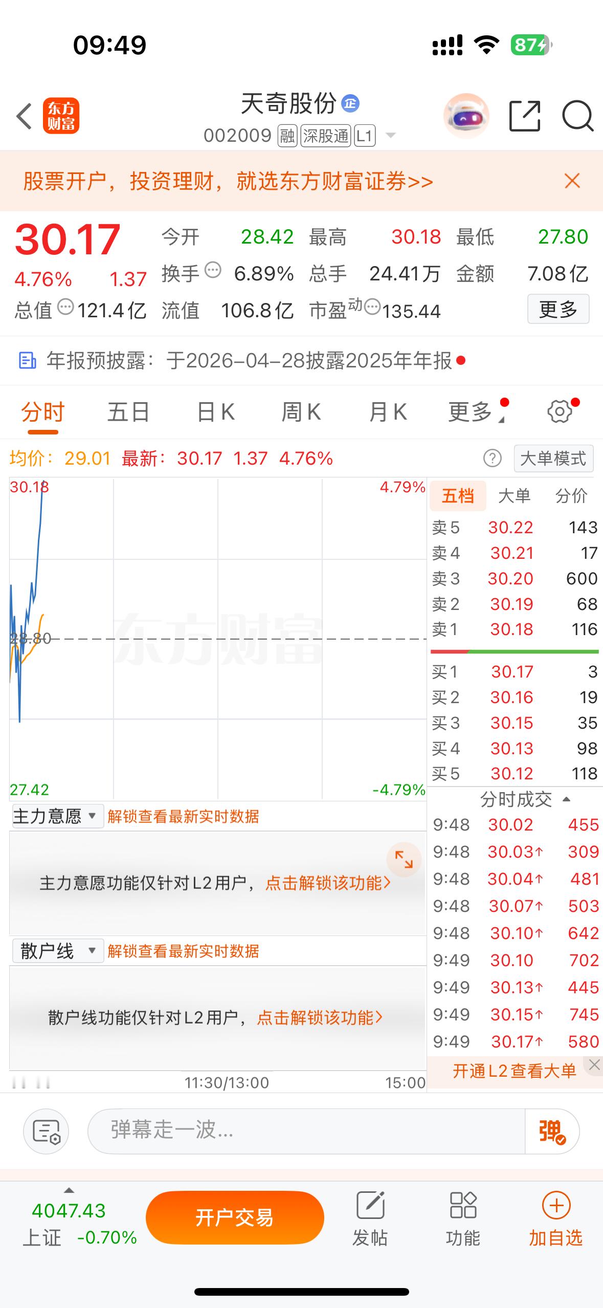 实盘上车,天奇股份002009持有,泰胜风能300129支持我的朋友点赞👍打8