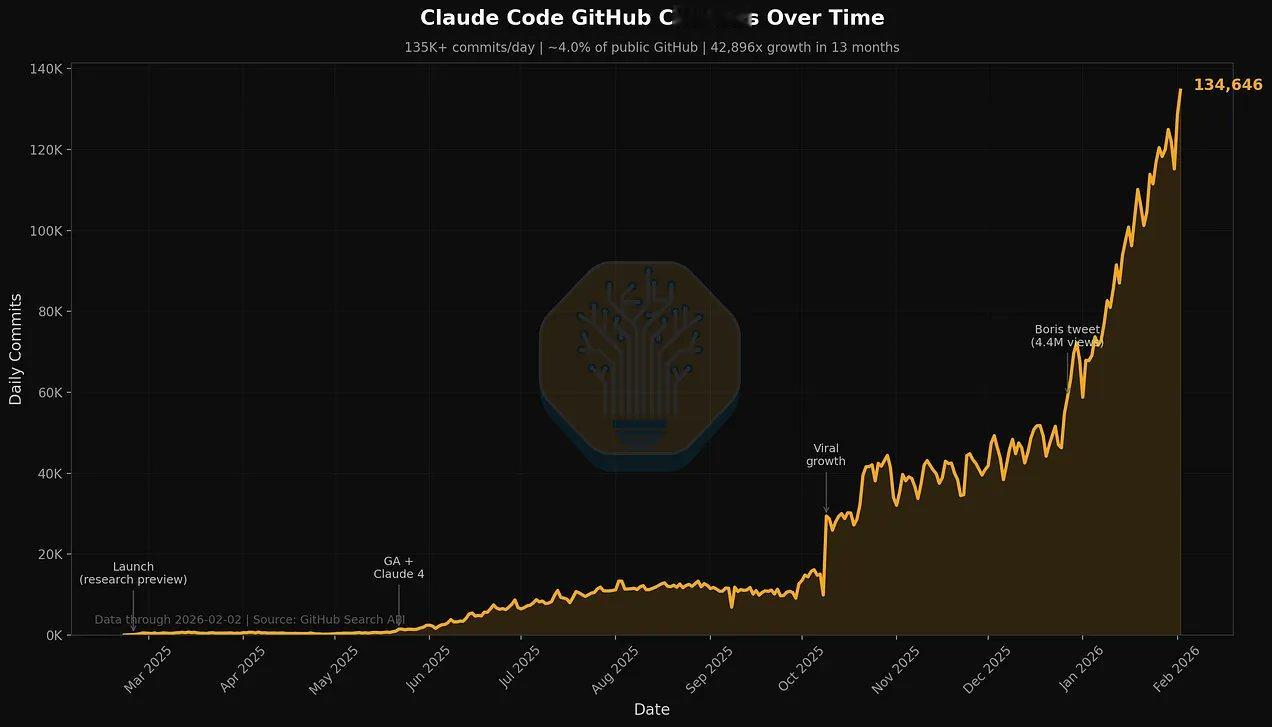 牛而逼之,semianalysis 长文力挺 Claude Code,第一句就是预计到 2026 年底,Claude Code 将占据 Github 每日总提交量的 20%以上。