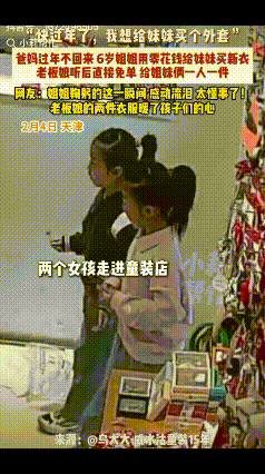 “活该发财!”天津,一童装店内进来了一对姐妹,店主以为是谁家孩子来寻求帮助的,不料,其中一女孩手里攥着皱巴巴的20多元钱,怯生生的说:“我想给妹妹买件棉衣!”接下来店主的做法太暖心。 2月4日的天津,隆冬的寒风裹着凉意吹进街巷,街边一家童装店的玻璃门上蒙着薄薄的雾气,店主正低头整理着货架上的冬款棉衣,店里暖融融的气息,和门外的冷意隔成了两个世界。 这时,两个小小的身影出现在店门口,迟疑了好一会儿才慢慢走进来。 这是一对姐妹,姐姐看着不过六七岁的年纪,小手紧紧牵着蹒跚学步的妹妹,两人的脸蛋都被寒风吹得泛红。 她们身上穿的衣服单薄,姐姐的袖口甚至磨出了边,姐妹俩的手冻得通红,揣在袖子里,却还是好奇又怯生生地盯着货架上的厚棉衣。 店主放下手里的活计迎上去,原本以为是孩子和家人走散了,想问问情况。 没等她开口,姐姐就慢慢把手从兜里拿出来,摊开的掌心里,是攥得皱巴巴的零钱,有纸币有硬币,凑在一起不过二十多块,都是孩子一点点攒下的。 姐姐把零钱捧在手里,小声却认真地告诉店主,想给妹妹买一件棉衣,快过年了,妹妹的旧衣服不暖和,这是她全部的零花钱,她不确定这些钱够不够,说话时,眼睛里满是期待又忐忑的神情。 店主温柔地问起孩子的父母,姐姐的神情稍稍落寞,小声说爸爸妈妈过年不回来了,说完便低下头,认真地数着手里的零钱,一遍又一遍,生怕数错了,就没法给妹妹买到棉衣。 店主看着眼前的孩子,心里揪了一下,这二十多块钱,连一件普通棉衣的零头都不够,可孩子这份满心想着妹妹的心意,却重过千钧。 姐姐自己也穿着单薄的衣服,却从头到尾没提过自己冷,眼里心里,只有想给妹妹添一件暖衣的念头。 她接过姐姐手里的零钱放在柜台上,转身从货架上挑了店里最厚实的羽绒棉服,先给小妹妹试穿。 第一件尺码不合适,姐姐就安安静静地站在一旁,小手攥着衣角,紧张地等着,直到换了第二件,大小刚刚好,小妹妹的脸上露出了甜甜的笑,姐姐也跟着松了口气。 店主看着姐妹俩冻得冰凉的手,又取了一件棉衣给姐姐穿上,翻出两双手套,一人一双套好,还拿了一双加绒的袜子,塞到孩子手里,怕姐妹俩冻脚。 她把柜台上的零钱重新塞回姐姐的口袋里,又倒了两杯温热的水递给姐妹俩,让她们暖暖手,看着孩子捧着水杯,小脸上满是欢喜,店主的心里也暖暖的。 姐姐一开始还推辞,不肯收下衣服,反复说着自己有钱,店主轻轻揉了揉她的头发,把钱牢牢塞在她的衣袋里,让她把钱留着,买点好吃的。 姐妹俩捧着棉衣,连声道谢,小小的身影手牵着手,蹦蹦跳跳地走出了童装店,姐姐紧紧抱着棉衣袋子,把这份温暖护在怀里,很快消失在街巷的尽头。 店主站在店门口,看着姐妹俩走远的背影,看了许久,冷风刮在脸上,心里却满是暖意,不过是一件棉衣,一双袜子,却是一个孩子能给妹妹的全部,也是她能给孩子的一点温暖。 这份温暖的善意,藏在店主麻利又温柔的动作里,藏在她为孩子取暖的细节里,没有刻意的张扬,只是一份看见他人难处后的心软。 这只是发生在天津街巷里的一件小事,却像冬日里的一缕阳光,悄悄融化了寒意,一个孩子的纯粹心意,一个店主的暖心相助,就这样在小小的童装店里,汇成了最动人的画面。 孩子的世界很简单,想给妹妹一件暖衣,便攒下所有的零花钱,大人的善意也很简单,看见这份心意,便伸手帮一把,不图什么,只是想让这份温暖,能留在孩子的童年里。