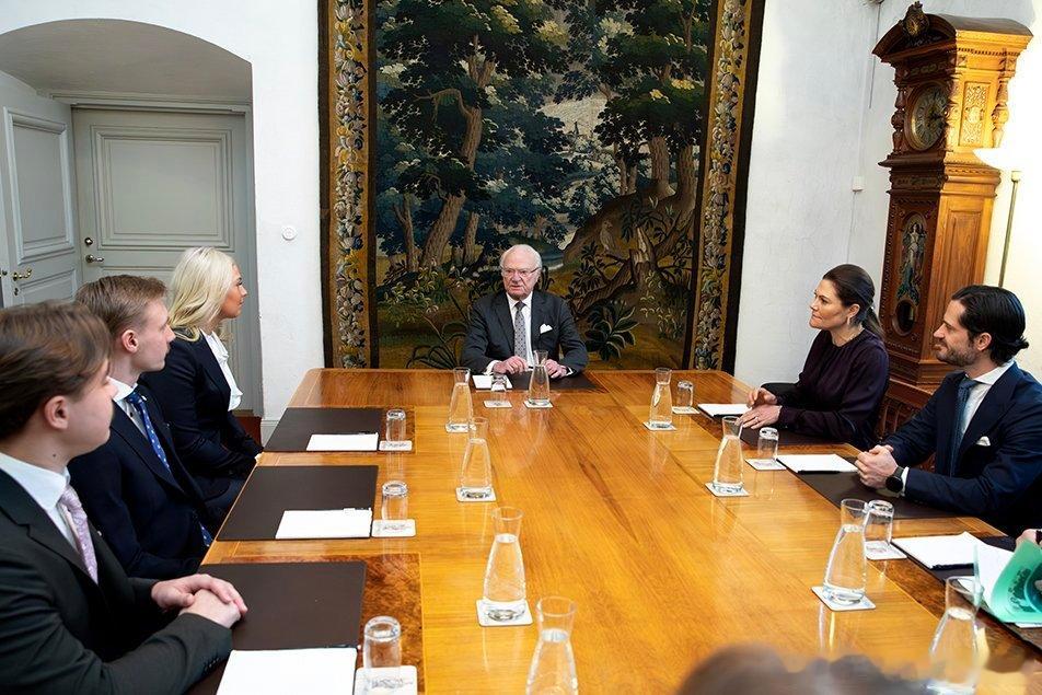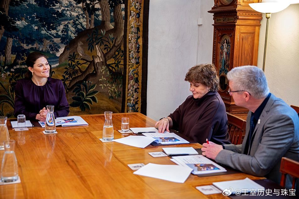 新闻 2026.2.5 瑞典王室成员在斯德哥尔摩皇宫接见及召开会议,维多利亚的深紫色套装来自Hugo Boss。