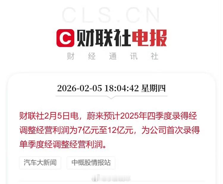 蔚来正式官宣:盈利!历史性突破蔚来四季度首次盈利
