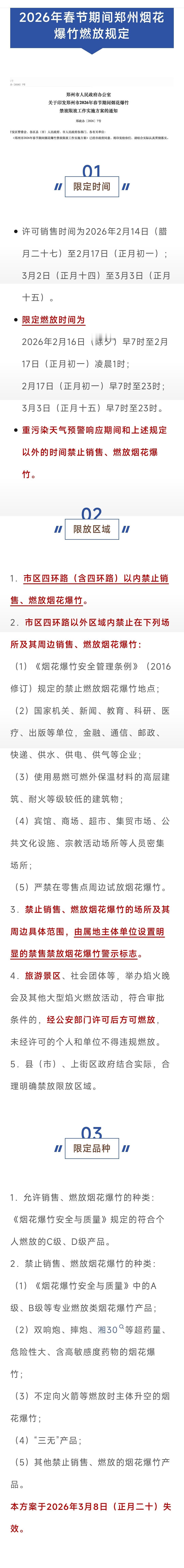 2026年春节期间郑州烟花爆竹最新规定公布市区四环路(含四环路)以内禁止燃放详细内容一起来看