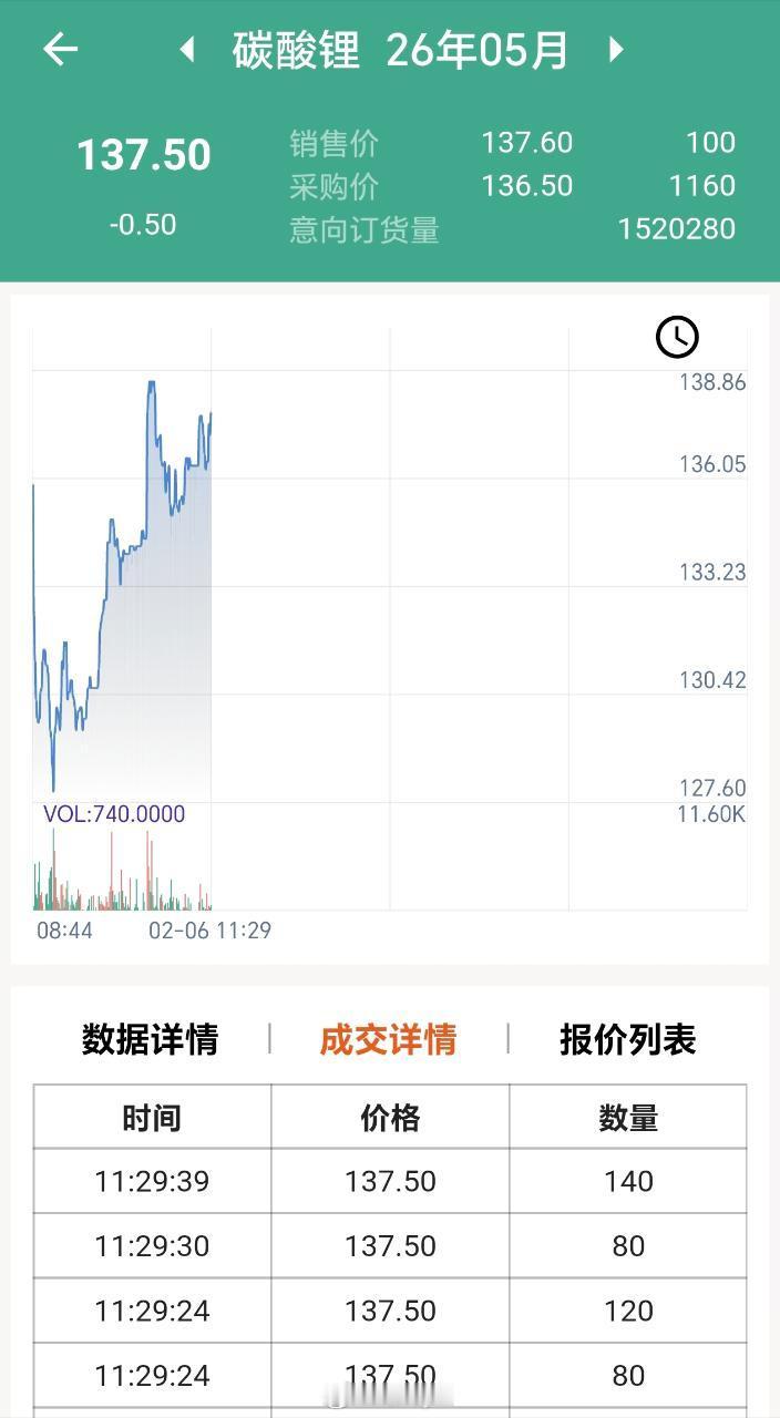 前几天广期所的碳酸锂比中联金的碳酸锂行情盘中经常低3000-4000点,今天LC大幅反弹后,价差基本恢复正常了,上午11:30中联金的碳酸锂5月合约收盘价137500,广期所的碳酸锂2605合约价格137140,价差现在只有360点,恐慌情绪似乎缓解了……