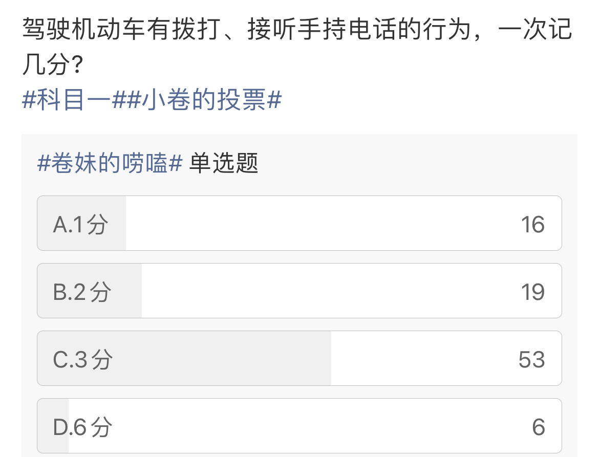 2022年4月1日起施行的新规明确规定:驾驶机动车有拨打、接听手持电话的行为记分从2分调整为3分。你记住了吗?科目一卷妹的唠嗑