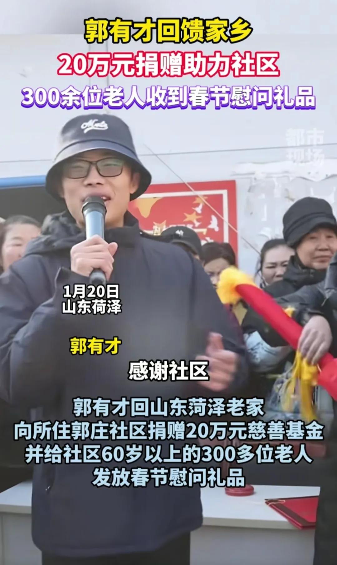 郭有才变郭有"财"了!别管他网红不网红,也别说他懂不懂《道德经》,人家有钱了而且心里还想着家长老百姓,就凭这一点,网友们就该给他点个赞!菏泽是个好地方,前有大衣哥后有郭有才。