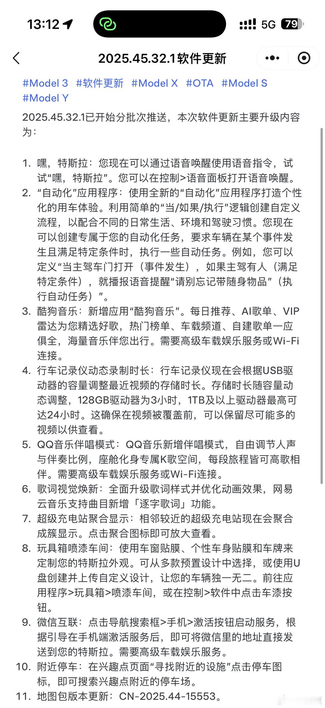 2025.45.32.1更新来咯特斯拉 嘿,特斯拉
