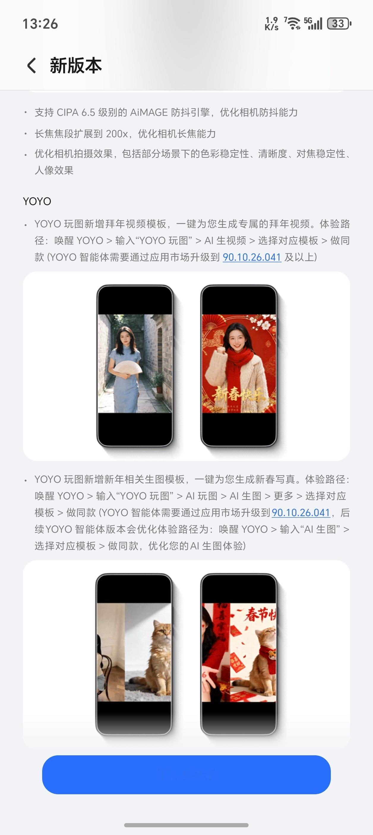 真的是越用越新,惊喜多多啊,荣耀Magic8 Pro又来系统更新了,130版本相机支持CIPA6.5防抖、长焦扩展到200倍变焦,YOYO玩图新增拜年视频生成……数码闲聊站