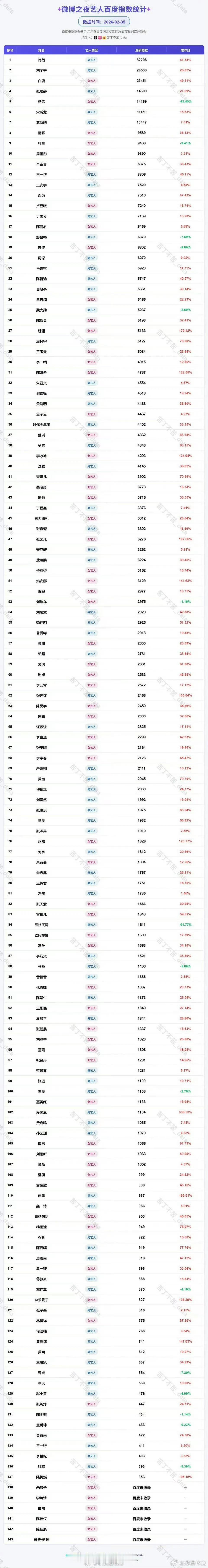 微博之夜艺人百指统计苏新皓内娱第七,楼内第一