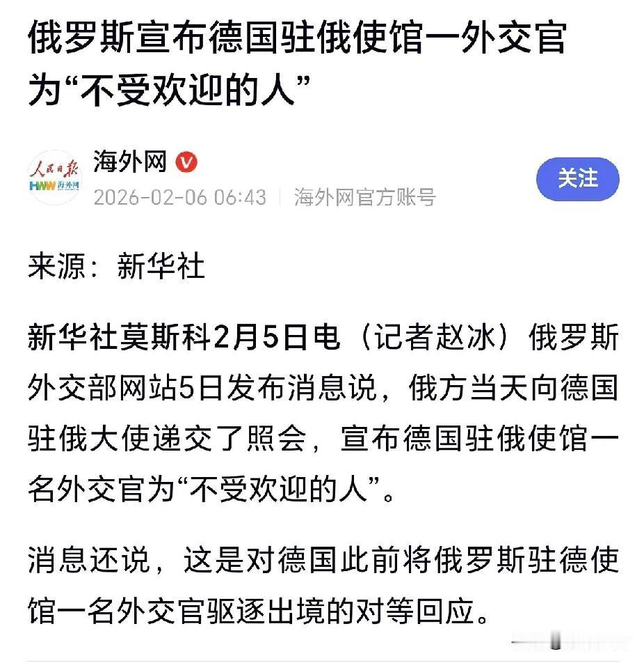 俄方这次拉黑的德国外交官,说白了就是“对等回怼工具人”——没公开姓名,但大概率是德国驻俄使馆的中层,之前德国刚以“从事间谍活动”为由,把俄驻德副武官扫地出门,说人家勾结德乌双重国籍人士搞情报,俄方骂这是“荒谬挑衅”,转头就揪了个德国外交官反击。这哪是针对某个人啊,就是俄德互掐的常规操作:之前默茨喊着给乌送导弹、毁克里米亚大桥,梅德韦杰夫直接放话要“抓捕”他,现在拿外交官开刀,不过是把嘴仗变成实际动作。说白了这外交官就是躺枪的,两国关系早烂透了,互相驱逐不过是走个流程,既刷存在感又不真撕破脸,纯属高端过家家。