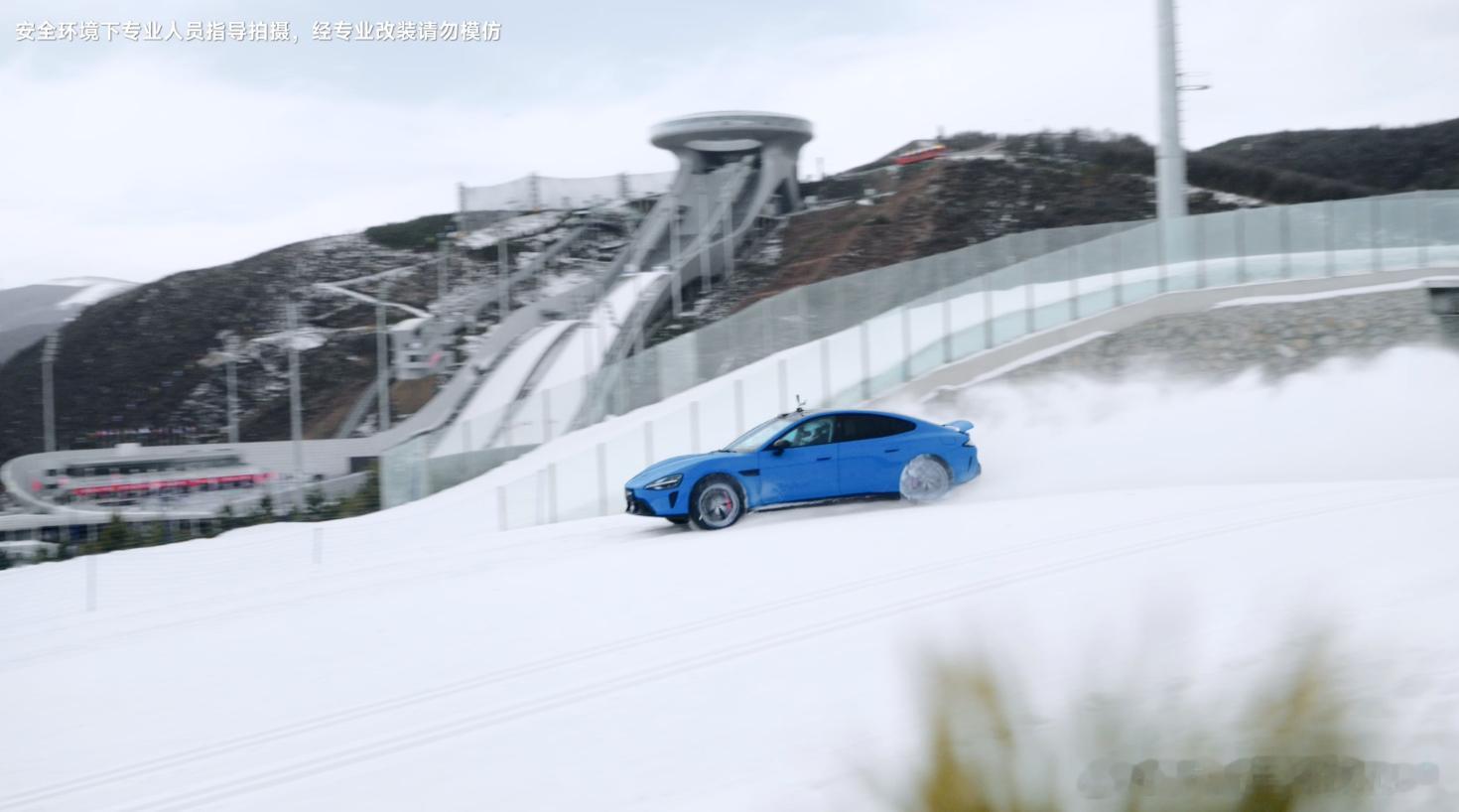 博主开新SU7在崇礼漂移新一代SU7卡布里蓝在雪景里的漂移大片是真帅啊!以前总
