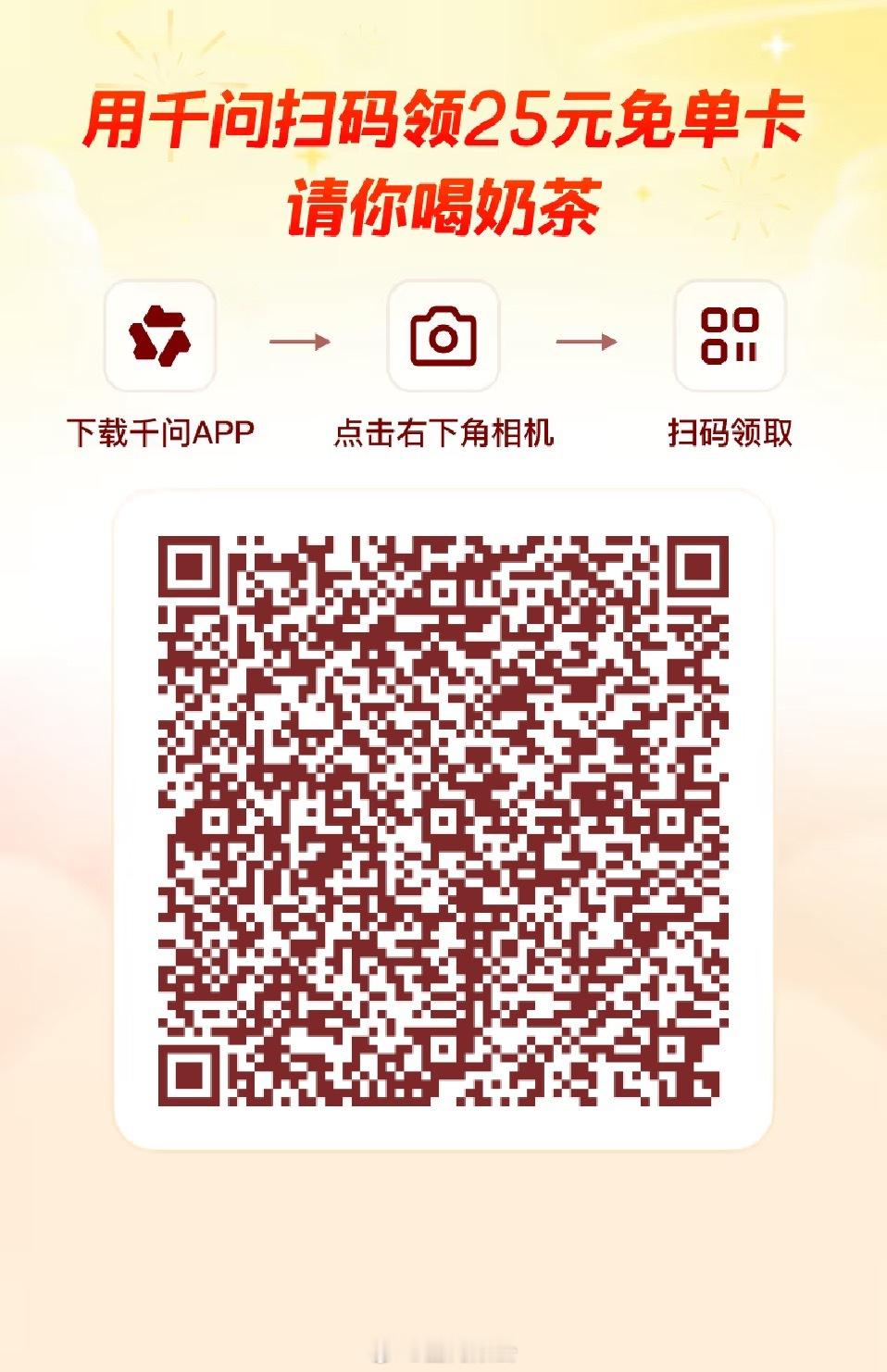 大家下载千问,再扫码可免费下单奶茶🧋哦记得先保存这个二维码