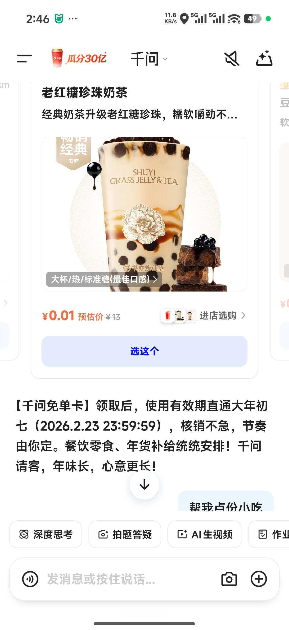 千问怎么说,别以为只能点奶茶,小吃烧烤炸鸡全都可以