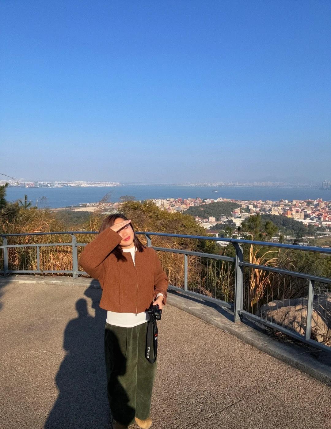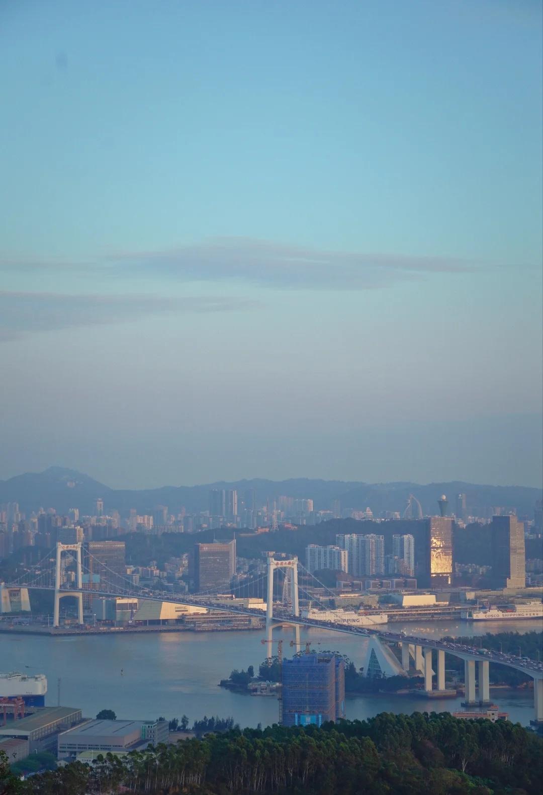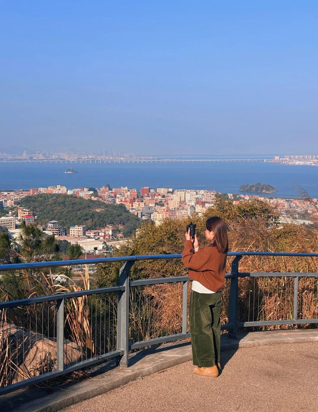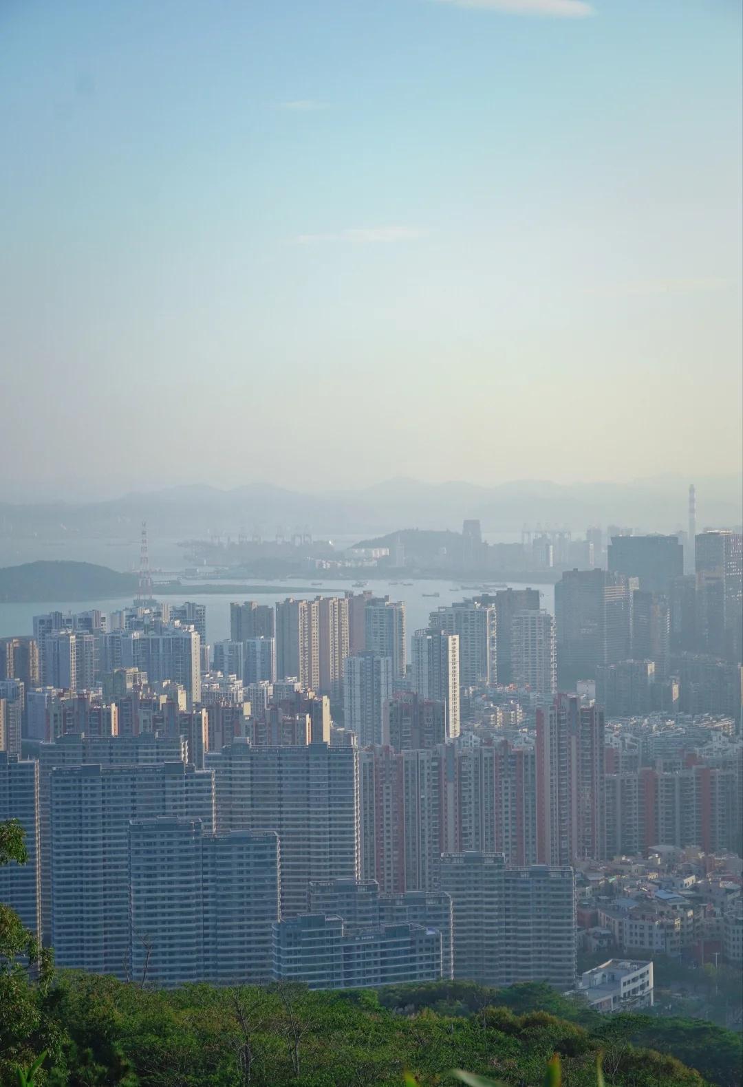 总要去一次大屏山吧,看看厦门的海上天际线 厦门大屏山|一半城市一半海 不用人挤人,就能把海沧大桥、海上天际线尽收眼底~ 在山顶的泡茶台,吹着海风,看城市与海相拥。 [心]出行指南 🚗交通:自驾、公交 自驾直接导航:竹榕园(山顶收费泡茶台),看日落推荐自驾,下山需要走一个多小时,不怕黑的当我没说 公交:大屏山公园站(适合喜欢徒步爬山爱好者),我走走停停拍拍坐坐到山顶两个半小时,有一小部分台阶,其他是平路。 徒步提醒:到山顶才有店铺,备水和小零食补充能量,注意防晒,早点上山,早点下山 厦门旅游 登高望远好去处 海沧 爬山日记 最佳观景位