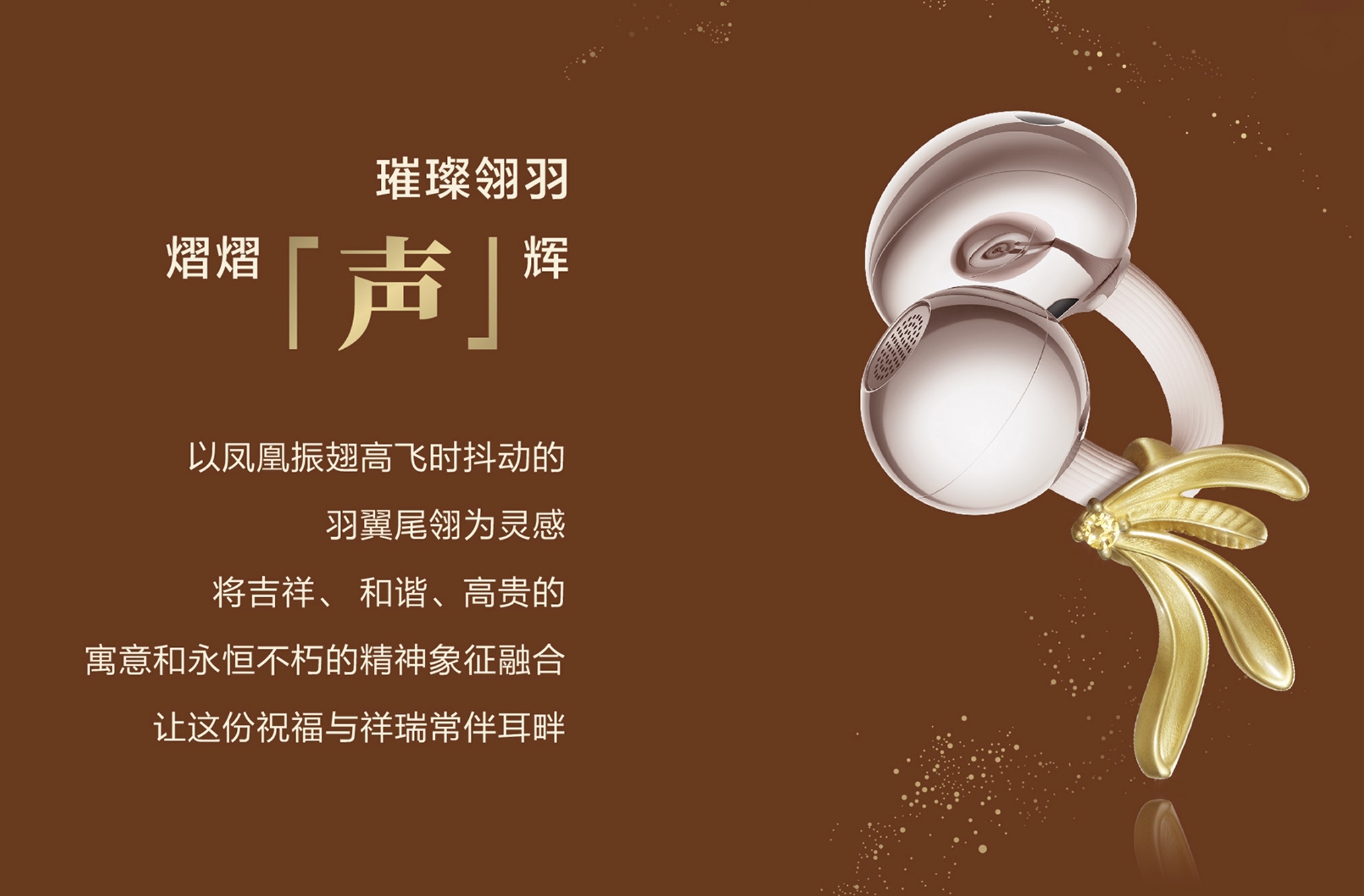 这两款配色还和周大福联名推出了礼盒,里面配了纯金的装饰,可以夹在耳夹耳机上面,看上去就像真的戴了一个金耳饰一样。