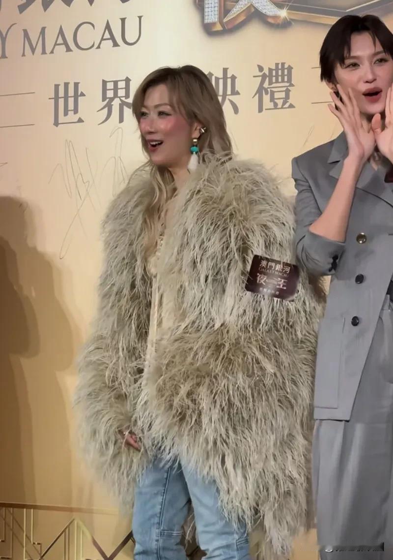 久未露面的郑秀文参加澳门某活动现场,上衣毛绒绒的着装,这个衣服模特穿都是雕兄来了,但是她穿真好看。脸上发红,我第一次见到腮红画这么明显的也可以很好看,尤其口红也这么明显,到底是哪里的问题?这个造型的所有元素都在说同一种语言——“复古名伶”或“七十年代的颓废华丽 (Boho Glam)”。郑秀文的气质真的很洋气独特,脸很立体不然就是福娃村姑。我觉得郑秀文、王菲、宁静都属于再“奇怪”的妆面到了他们脸上都不奇怪,反而有种个性的美!