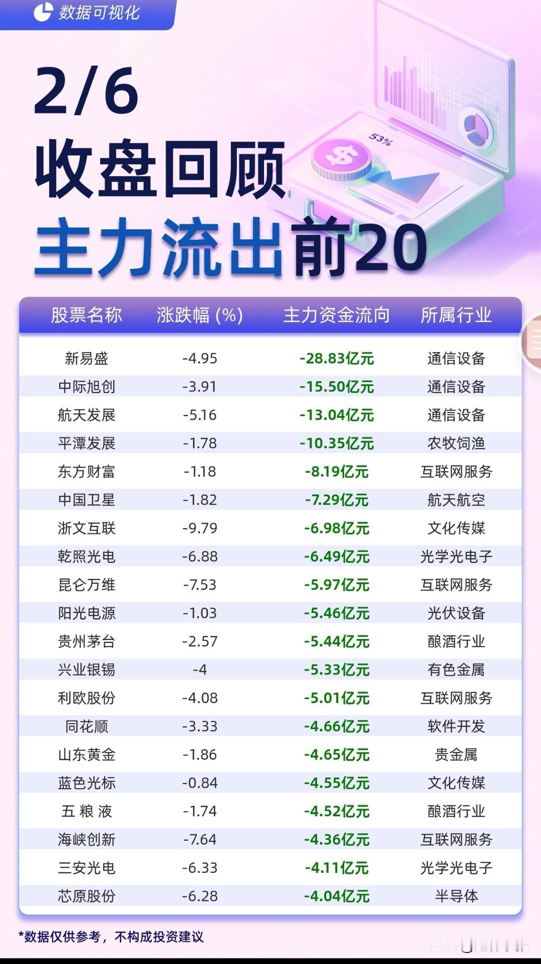 2月6日收盘资金风向:主力动向全解析 今日收盘,主力资金的攻防战已经打响!在