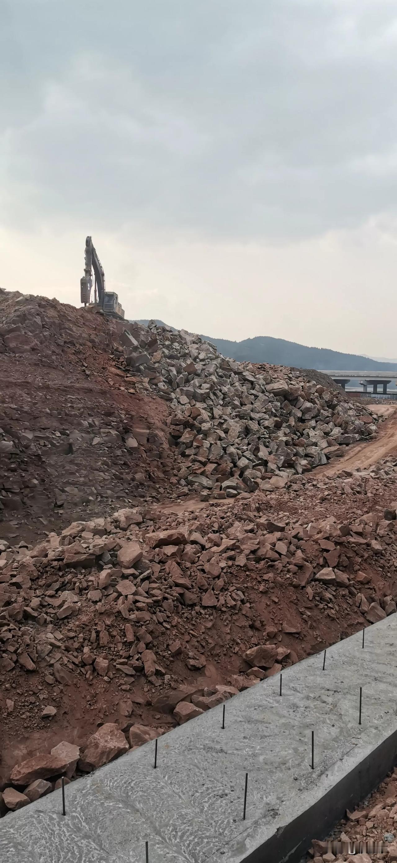 挖机高台破碎土石 未设置安全员 未拉警戒线 施工便道还有车辆人员通过 这样的违规作业只能中午干