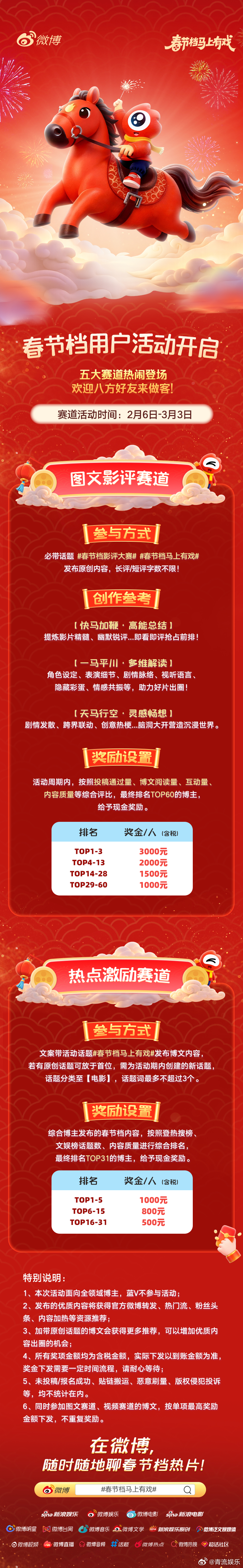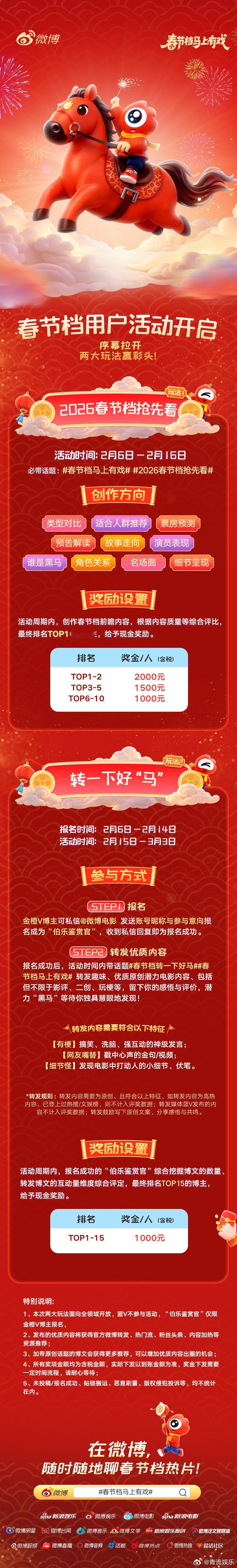 春节档马上有戏今天正式开场!新春赛马场鸣锣开跑,春节档热片提前热聊。你pick哪部春节档电影?快来为它打call→ 网页链接2026春节档抢先看