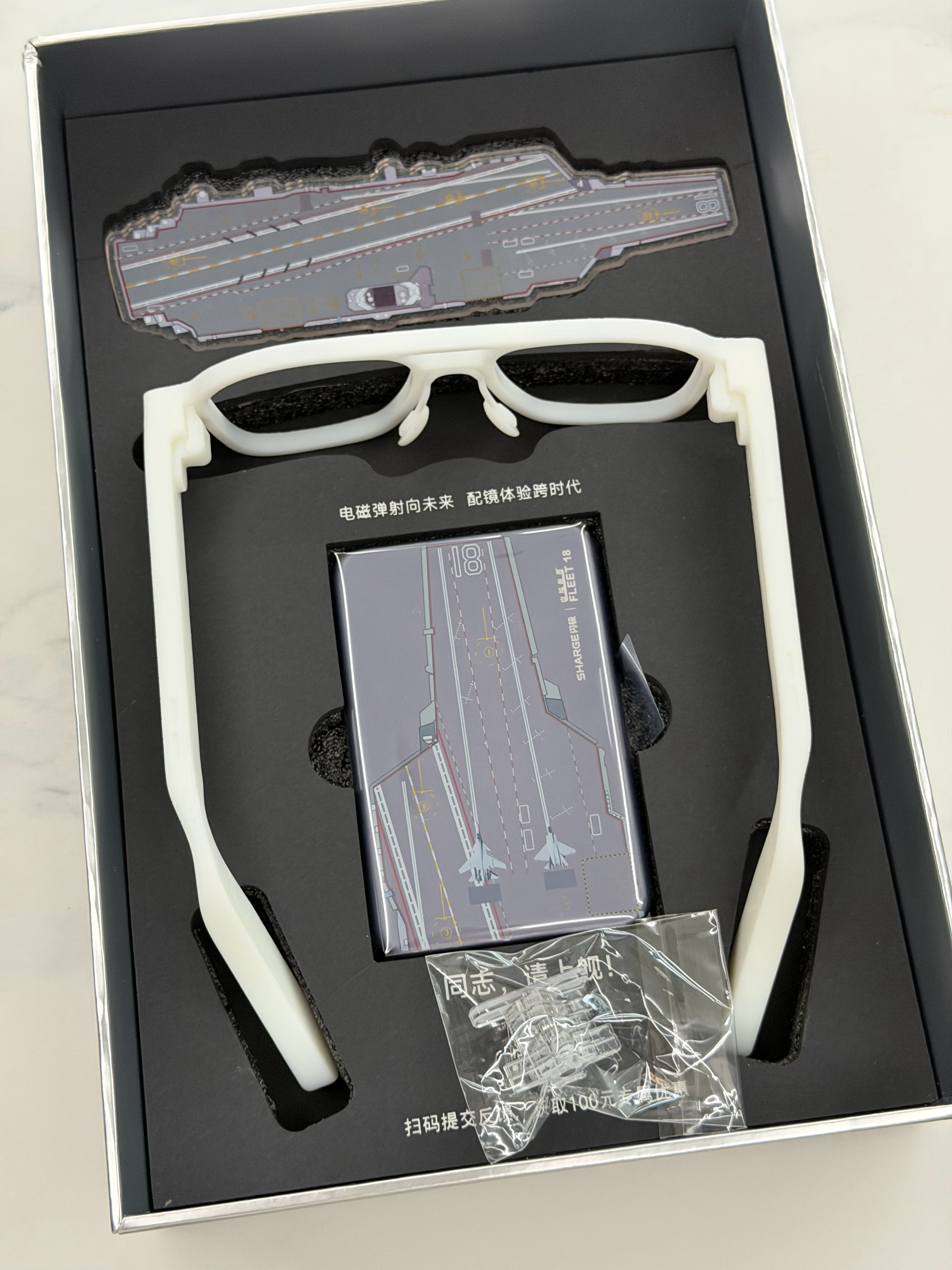 闪极限定礼盒不错,给了个3D打印的眼镜,提前感受一下,还有中国航母的联名磁吸充