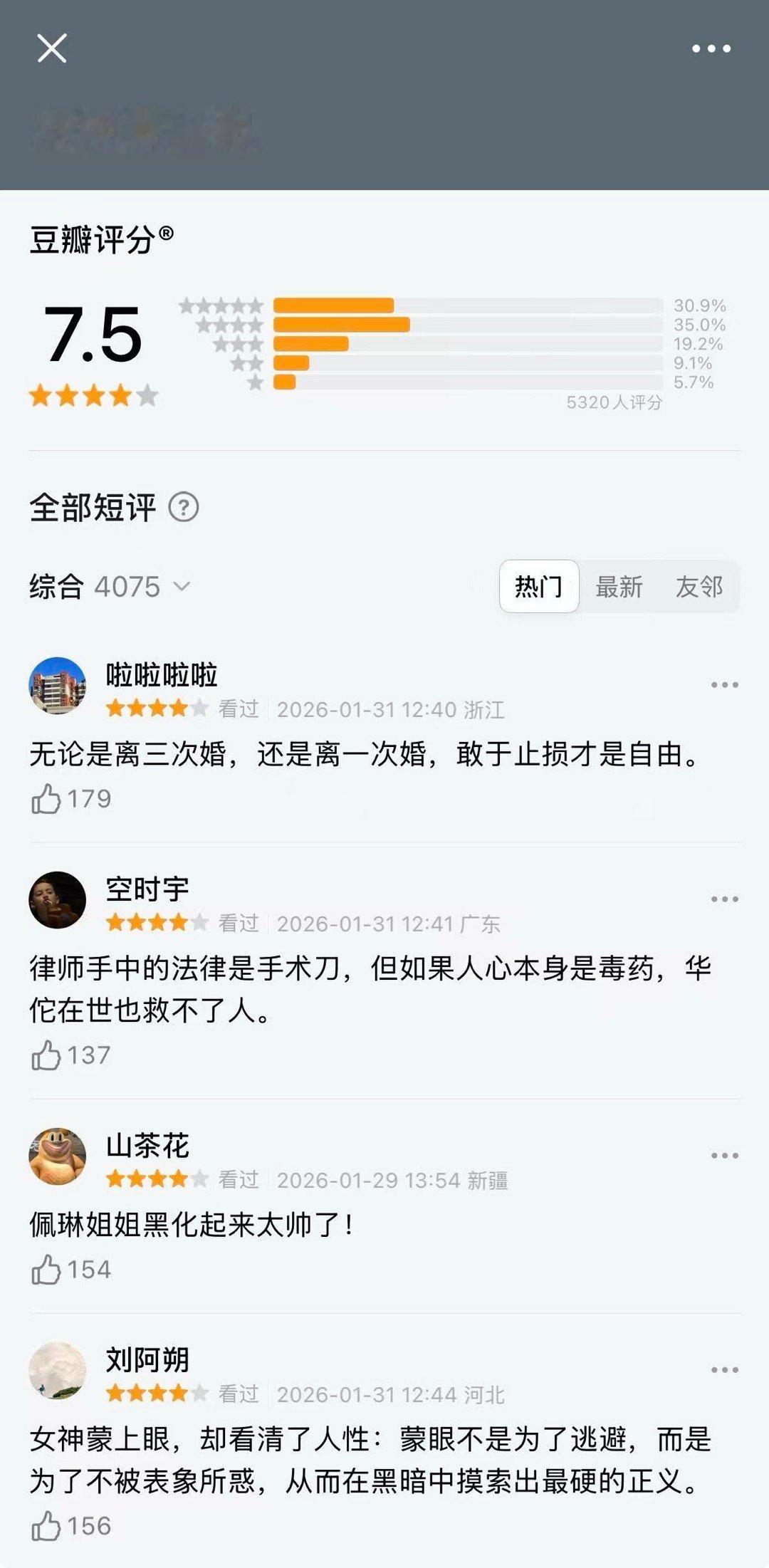 辛芷蕾新剧《女神蒙上眼》豆瓣开分7.5,卫视已经十一连冠领跑第一,至此三部1番剧豆瓣开分7分以上,1部一番电影开分7以上,她出道到现在就4部一番作品,只要给辛芷蕾机会,辛芷蕾就会给高收视,高回报,高奖项,知道给谁递本子了吗?