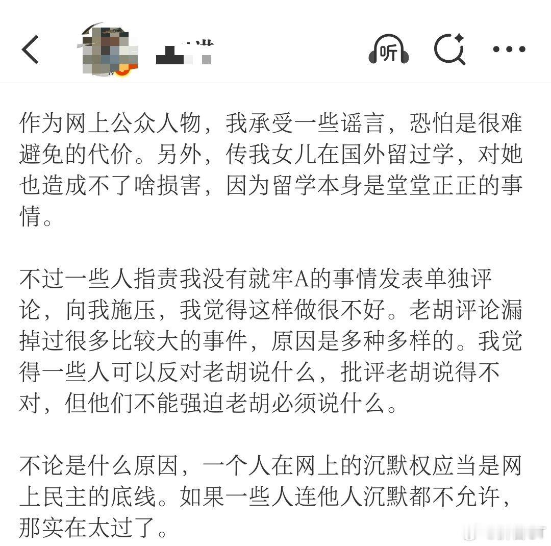 “不论是什么原因,一个人在网上的沉默权应当是网上民主的底线。如果一些人连他人沉默都不允许,那实在太过了。”